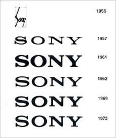 최초의 소니 로고는 1955년에 처음으로 Sony를 상표 등록 했을 때에 사용했던 것으로, 사각으로 둘러싸인 것이 특징이다. 이후 로고는 조금씩 모습을 바꾸면서 소니 브랜드의 글로벌화 전략과 함께 변화된다. 지금의 소니 로고는 1973년에 만들어진 디자인이 계속 사용되고 있다. 1981년 창립 35주년을 맞이해 '새로운 로고를 만들자'라는 의견이 나와 로고 디자인을 고모하기도 했지만, 결국 '현재의 로고가 명쾌하고 좋다'는 다수의 의견으로 바뀌지 않았다.