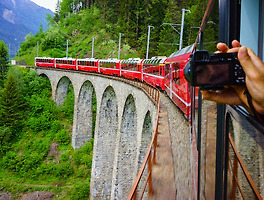 지루하고 평면적인 장면에 입체감을 주는 구도가 바로 프레임 속 프레임입니다. 창을 통해 풍경을 바라 보는 것과 같은 구도로 주변 풍경을 독특하게 만들 만한 요소를 찾아보세요. 위쪽 사진은 와인 잔에 로우 앵글로 바짝 다가가 촬영한 사진으로 풍경보다 거대하게 표현된 잔의 모습이 재미있습니다. 아래쪽 사진은 목가적인 스위스의 풍경을 감상하며 산을 오르는 기차에서 찍은 사진입니다. 기차의 곡선 철제 장식이 풍경을 더욱 우아하게 만들어주고 있습니다.