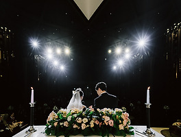 신랑신부의 움직임보다는 축가를 부르는 사람의 움직임이 있을 수 있으므로 적당한 셔터스피드 확보가 필요합니다. 준망원 계열의 렌즈를 이용하여 점화 된 화촉의 불꽃을 걸쳐 찍으면서 좀 더 드라마틱한 연출을 하기도 합니다.