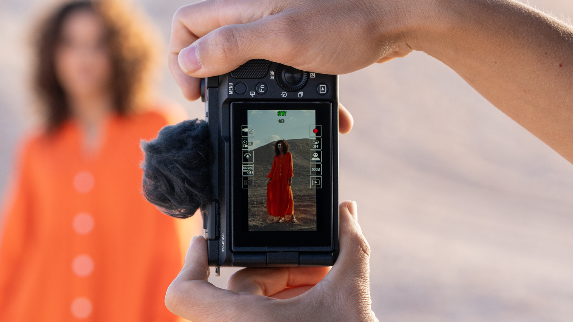 카메라를 수평에서 수직으로 전환할 때 디스플레이에 표시된 촬영 정보 레이아웃이 자동으로 세로로 전환되어 멋진 결과물을 완성할 수 있도록 해줍니다. 가로형 영상은 물론, 이제는 세로형의 숏폼 포맷까지 지원하는 ZV-E10M2와 함께 환경에 구애받지 않는 멋진 창작물을 만들어 보세요.