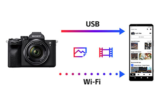 더불어 카메라와 스마트폰 간 유/무선 전송도 지원합니다. 고화질의 대용량 이미지 데이터를 Wi-Fi 또는 USB 케이블을 통해 스마트폰으로 전송할 수 있습니다.