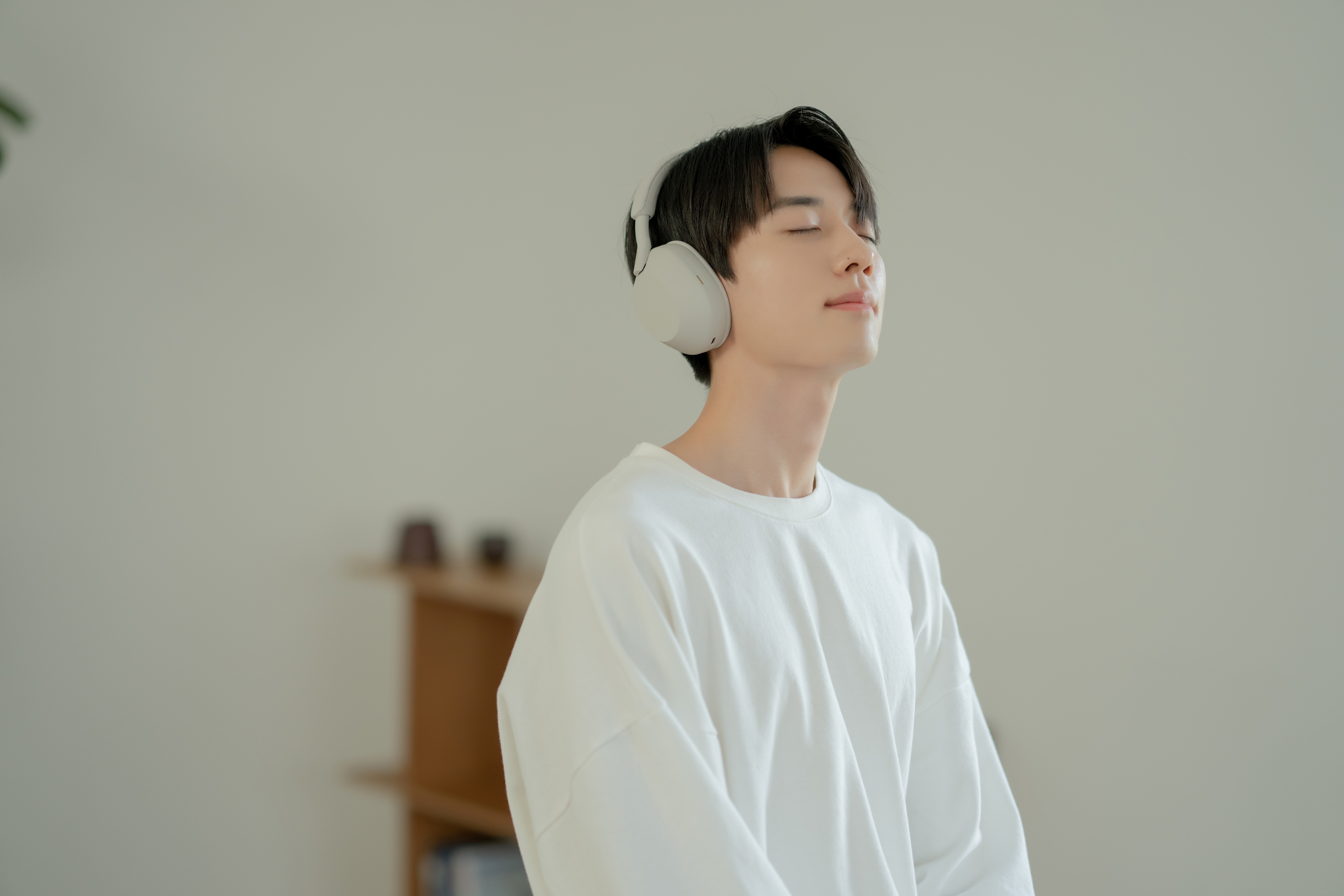 1. 소니 WH-1000XM5를 쓰고, 명상에 도움이 되는 잔잔한 음악을 골라주세요.
