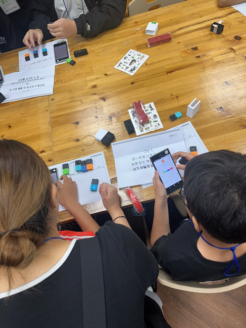워크샵 활동은 크게 ①소니와 메시 소개, ②메시 블록 이론 학습 및 실습, ③팀 프로젝트 제작 및 발표의 순서로 이루어졌습니다. 특히 팀 프로젝트 제작 및 발표는 아이들이 메시 블록을 활용하여 일상 생활 속 문제들을 직접 해결하는 시간으로, 아이들의 창의력이 돋보이는 문제 해결 방안을 확인할 수 있었죠.
