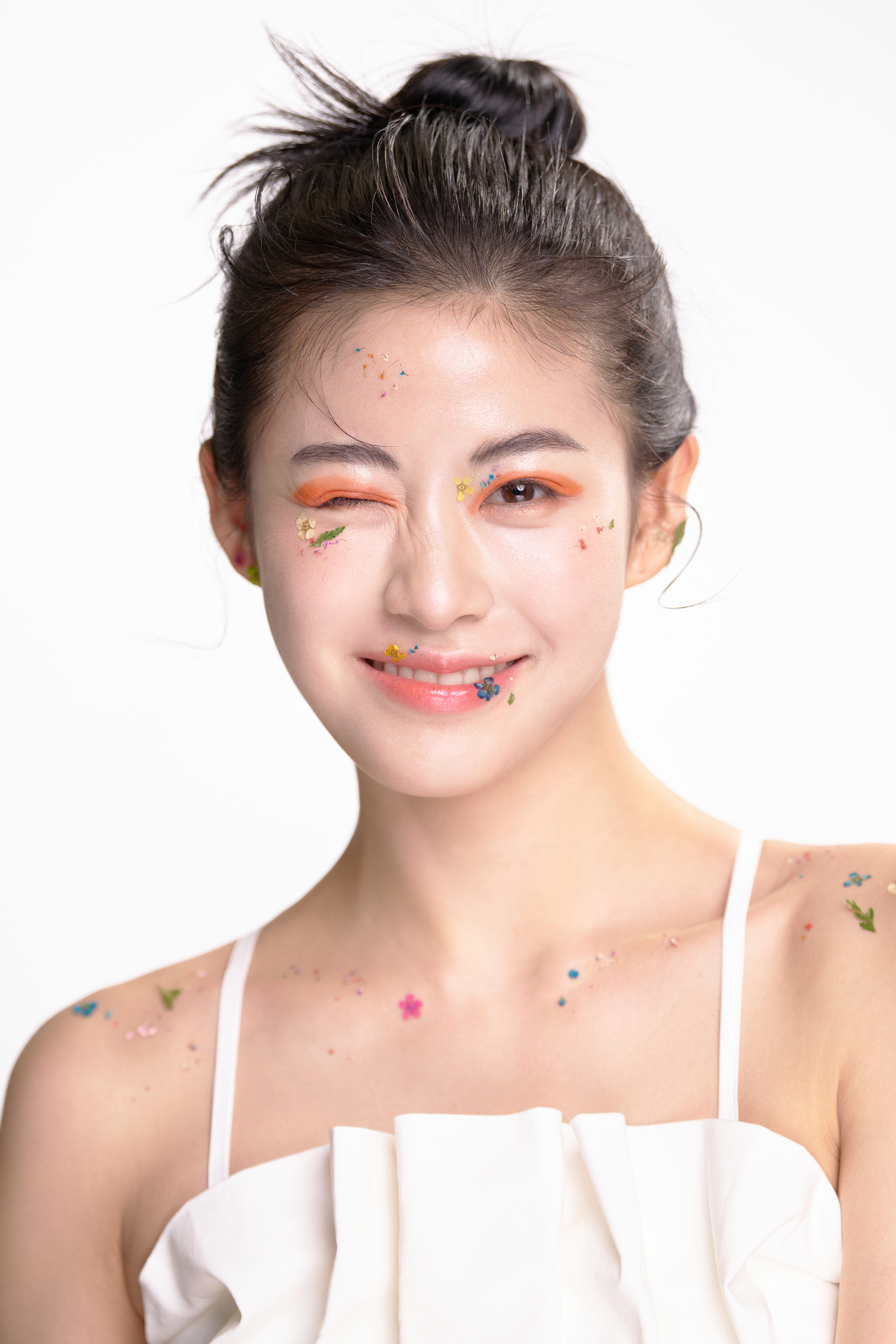 많은 사진을 모아놓고 보니 이번 촬영 주제를 ‘피어오른다’ 라는 단어로 정의를 내릴 수 있겠더라고요. ‘피어오른다’ 라는 동사에 제일 잘 어울리는 것이 ‘꽃 = 화(花)’ 이라고 생각하여, 꽃을 주제로 작업을 진행하였습니다. 시각적으로 어떻게 이야기를 풀지 고민하다 꽃이 되길 꿈꾸고, 개화하고, 그 꽃이 내가 되는 내용을 담았습니다.