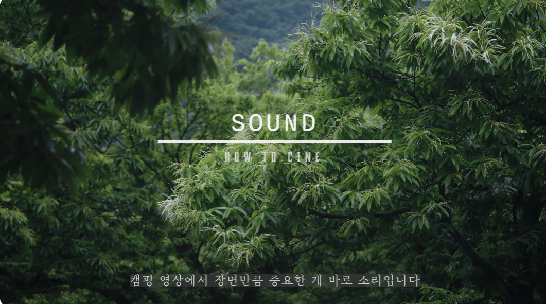 캠핑 영상에서 장면만큼 중요한 요소는 바로 소리입니다. 아침의 새소리, 후두둑 떨어지는 빗소리, 캠핑 장비가 달그락거리는 소리들은 영상에 생명력을 더하고 실제 캠핑 현장에 나와있는 생동감을 주어 시청자의 몰입도를 높일 수 있습니다.