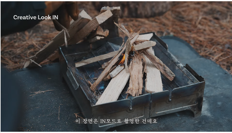 예를 들어, FL 모드는 세련된 색감의 시네마틱한 필름 느낌을 줄 수 있죠. 동일한 장면을 IN 모드로 촬영하면, 색이 바랜 듯한 컬러감으로 감성적인 느낌을 부각시킵니다. 이처럼 크리에이티브 룩 기능을 활용하면 더욱 다양한 스타일로 영화 같은 감성 캠핑 영상을 표현하는 것이 가능합니다.