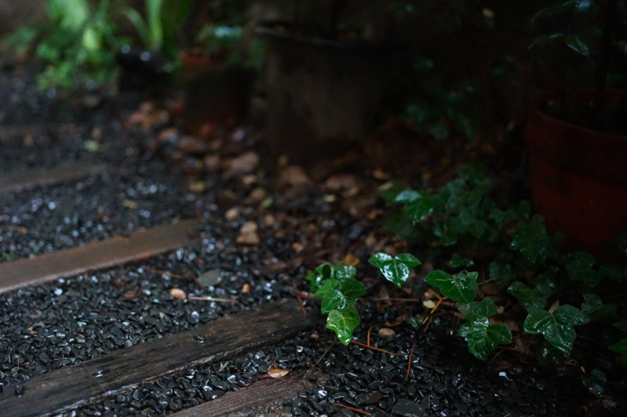 작은 잎들이 비를 맞고 있는 걸 발견.