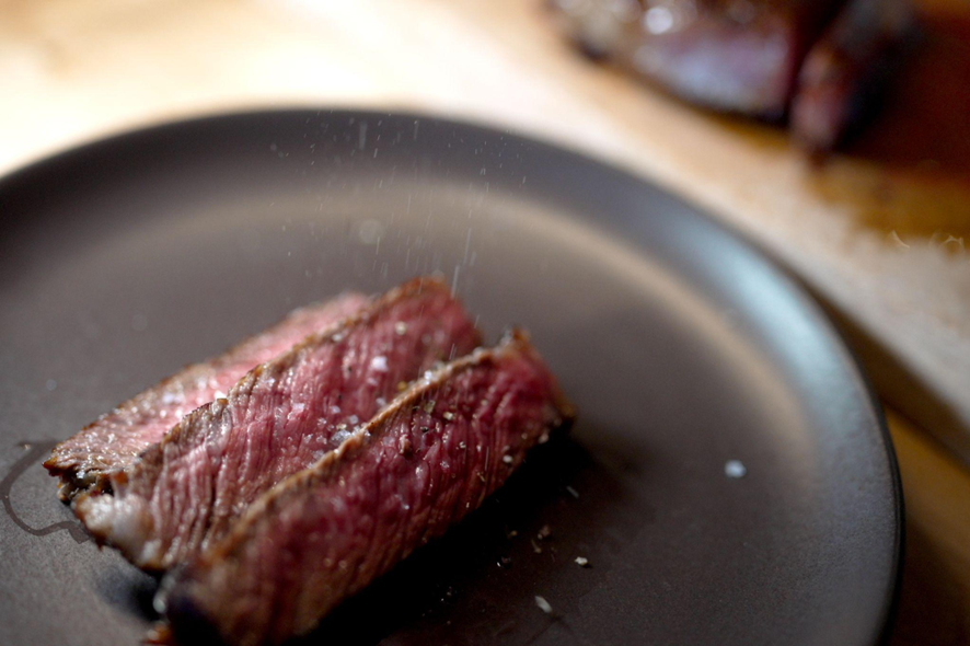 내가 찍어둔 수많은 스테이크 사진들 중 최고는 바로 이 소금이 뿌려지는 스테이크 사진이다.