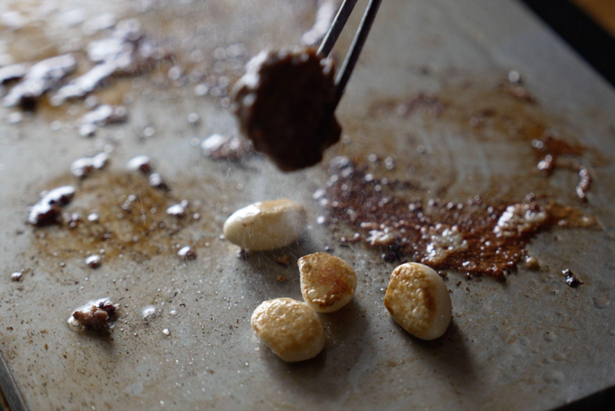 철판에 마늘이 구워지는 순간을 담은 역작.