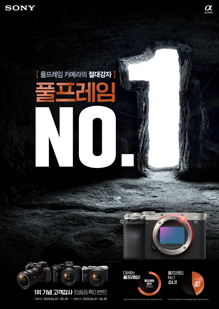 풀프레임 미러리스 카메라 시장을 선도해온 소니코리아가 풀프레임 미러리스 카메라 시장 12년 연속 1위 고객감사 정품등록 이벤트를 4월 1일(화)부터 5월 30일(금)까지 진행한다고 밝혔습니다.