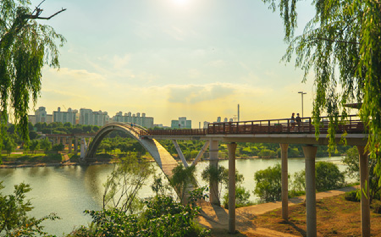 선유도공원은 영등포구 양화동에 위치한 국내 최초 재활용 생태공원입니다. 이곳은 한때 폐정수장으로 사용되던 공간이었는데요. 기존의 건축물들을 재활용해 2002년부터 친환경 생태공원으로 새롭게 태어났어요. 선유도공원은 규모가 크진 않지만 다양한 경관을 볼 수 있어요. 피크닉을 즐기기 좋은 녹색기둥의 정원, 한강과 서울의 전경이 한눈에 보이는 선유교 전망대, 그리고 역사가 담긴 전시관까지 만날 수 있어요. 또, 바로 옆에는 양화한강공원이 있어서 여유롭게 산책하기에도 좋은 코스입니다. 친구들과 가볍게 나들이를 떠나고 싶을 때, 한적하고 아늑한 분위기의 선유도공원으로 가보세요!