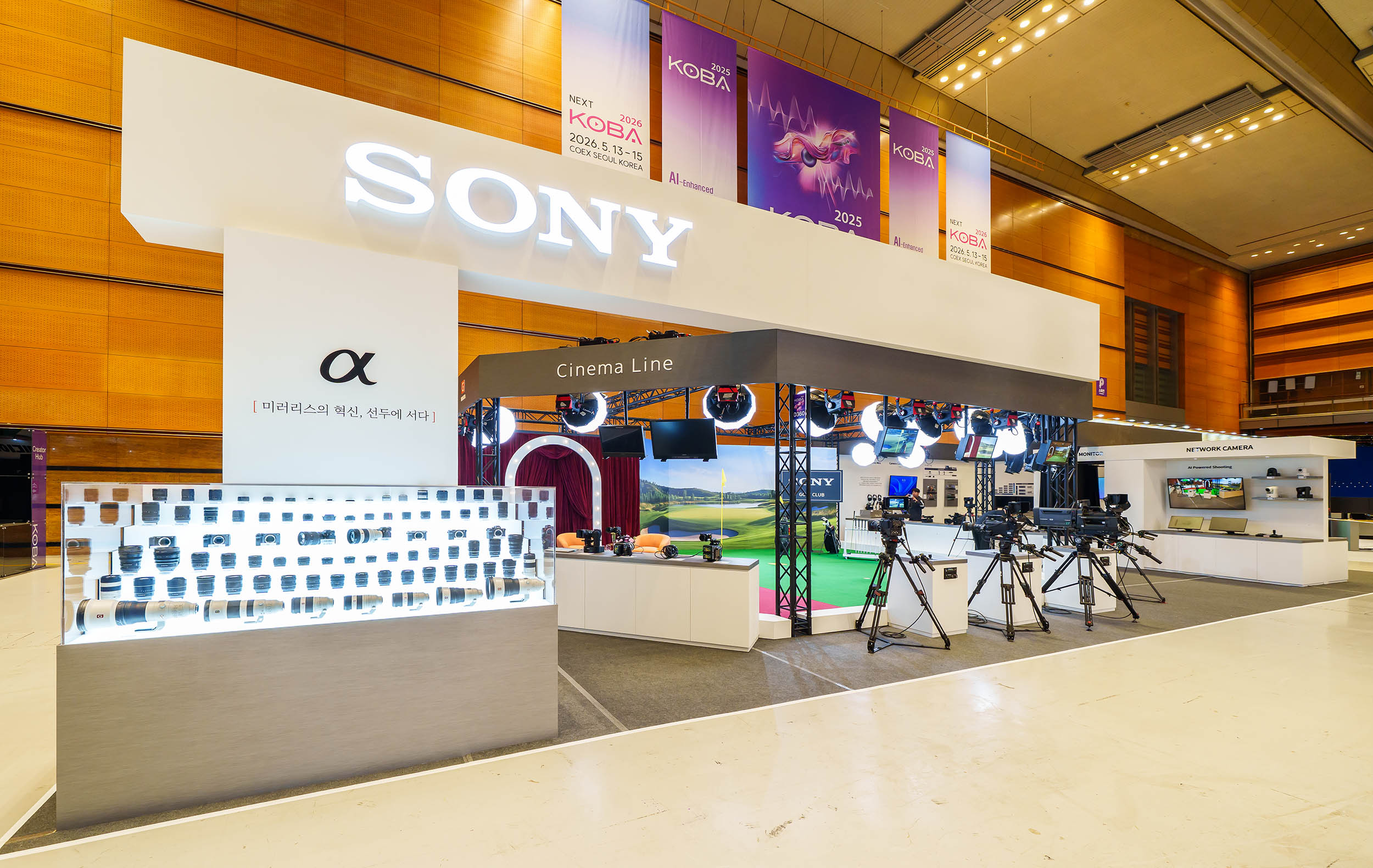 개인 크리에이터들을 위한 알파 풀프레임 미러리스 라인업과 총 78종의 미러리스 E-마운트 렌즈, 시네마 라인도 전시된다. 풀프레임 플래그십 카메라 Alpha 1 II부터 초고화소 카메라의 매력을 느낄 수 있는 Alpha 7R V, 작년 풀프레임 미러리스 카메라 시장 전체에서 판매 수량 및 금액 기준 1위[1]를 차지한 Alpha 7C II 등 알파 라인업이 전시되며 영상제작 특화 제품 라인업인 시네마 라인 FX30, FX3와 FX6 그리고 BURANO와 VENICE 2까지 만나볼 수 있다. 나아가, 전 구간 F2.0 줌 렌즈인 SEL2870GM과 SEL50150GM은 슈팅존에서 직접 체험 가능하다.