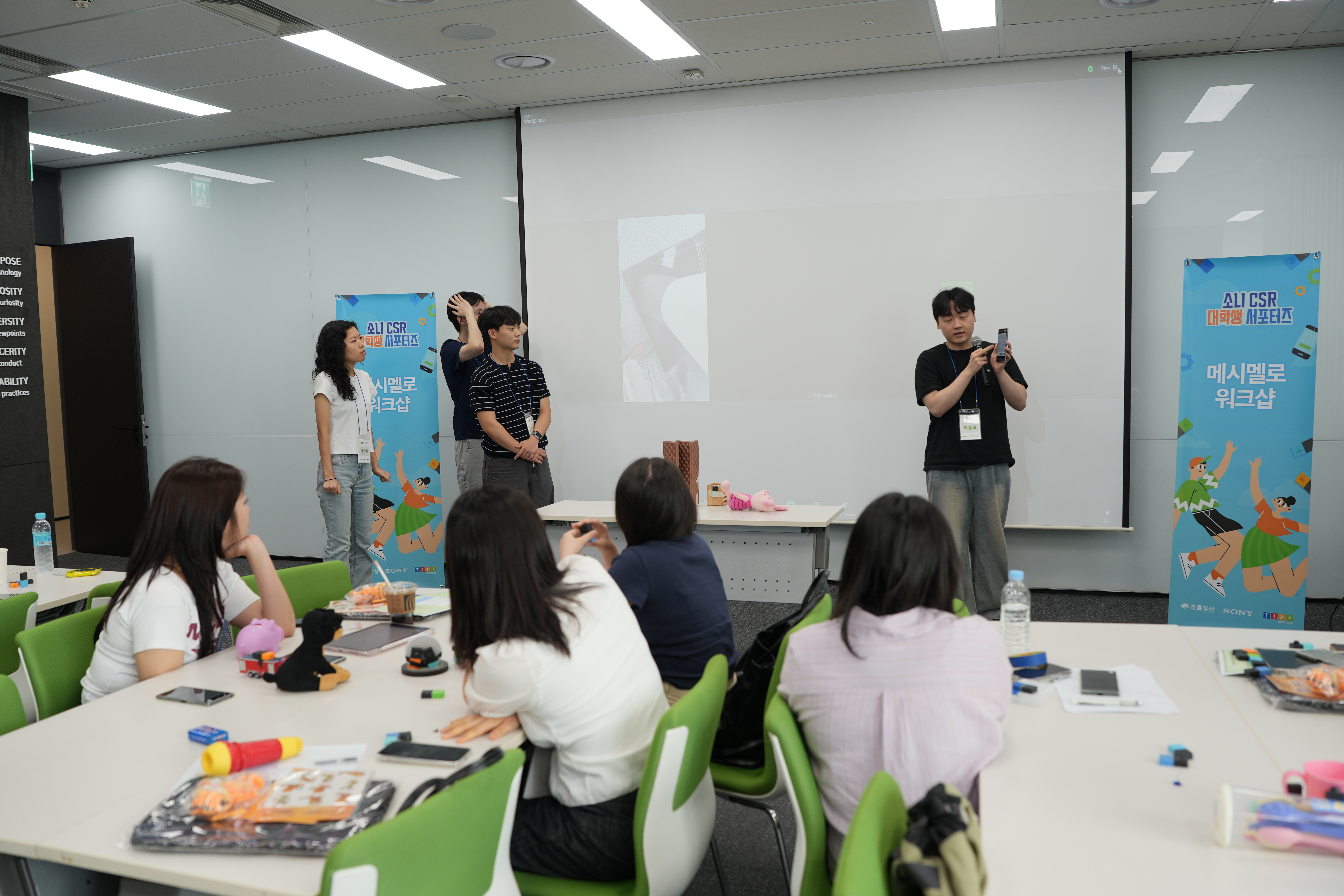 먼저, 소니코리아 담당자의 환영 인사와 함께 메시멜로 프로그램의 취지와 미션에 대한 안내가 있었습니다. 설명을 들으며 프로그램에 참여하는 서포터즈의 눈빛에서 ‘아이들에게 꼭 도움이 되고 싶다’는 다짐이 느껴졌답니다! 😊