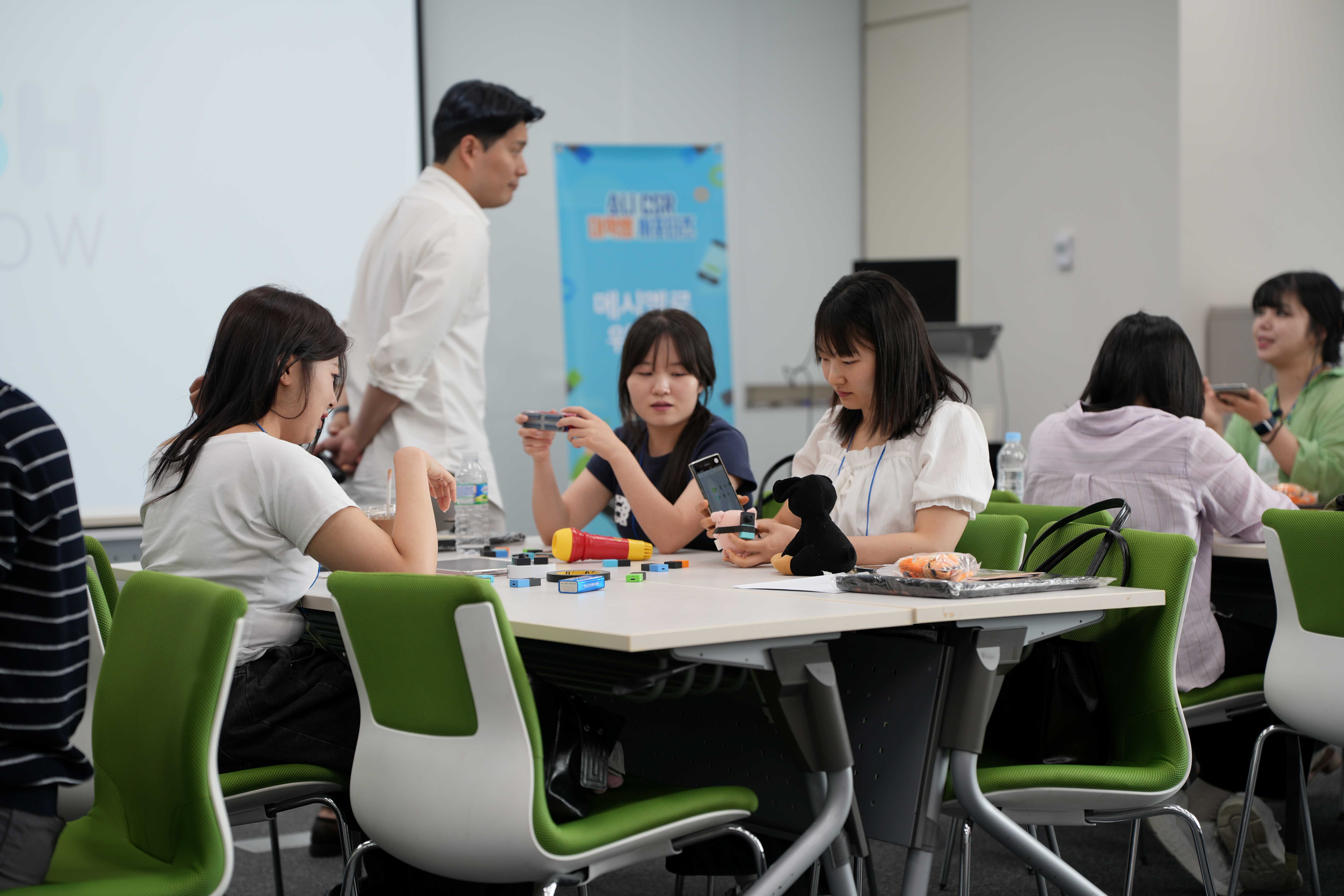 서로 아이디어를 주고받으며 가장 높은 구조물을 완성하기 위해 진지하게 고민하다가도 깔깔거리며 즐기는 모습이 인상적이었는데요, 이렇게 적극적으로 문제를 해결해가는 과정을 통해 서포터즈들은 앞으로 아이들과 함께할 IT 교육에서도 창의적인 시도와 팀워크가 얼마나 중요한지 몸소 체험할 수 있었습니다.
