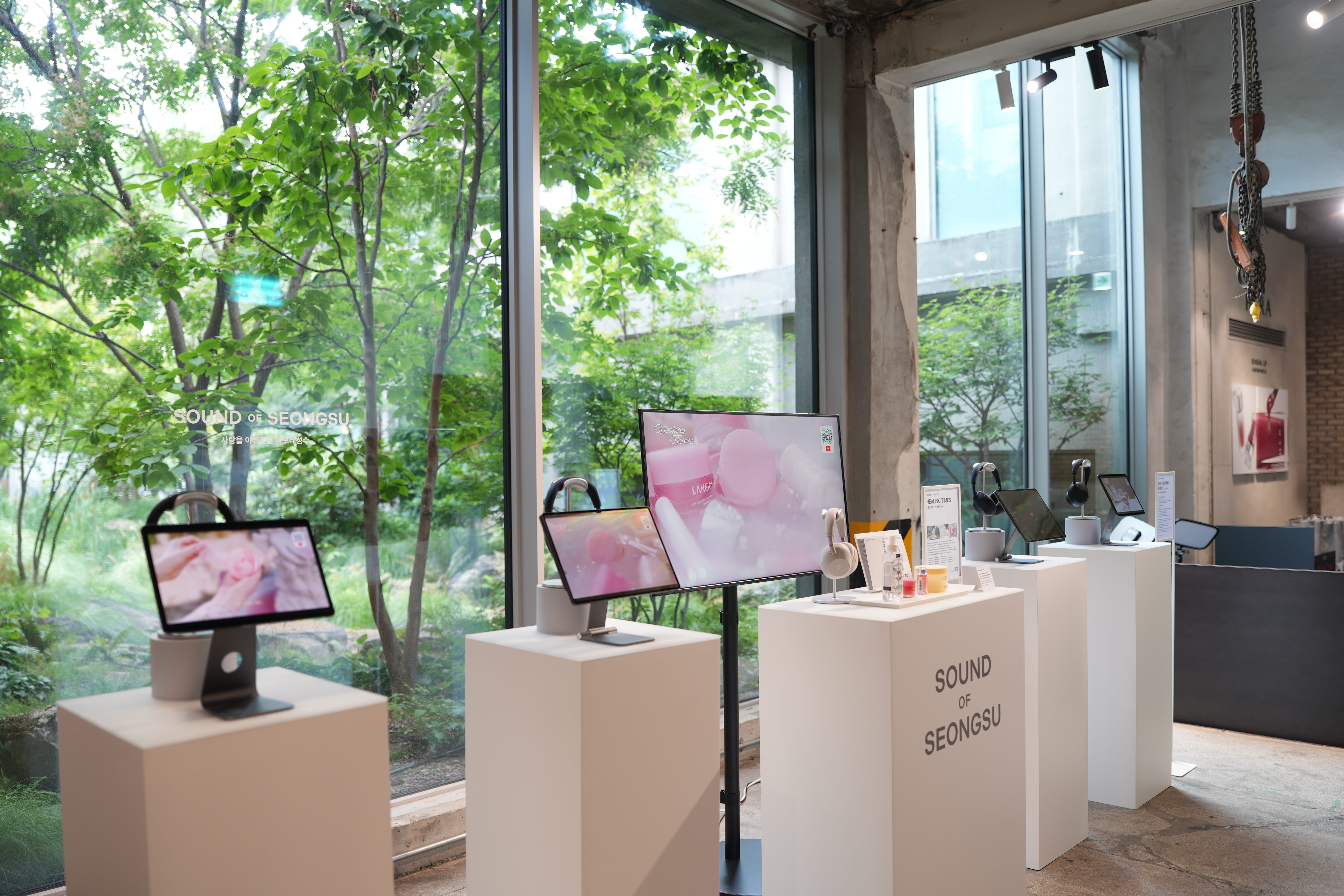감각적인 공간 연출과 함께, 소니만의 오디오 기술을 직관적으로 체험할 수 있는데요, 오디오 도슨트를 통해 아모레성수의 공간별 스토리를 들을 수도 있답니다.