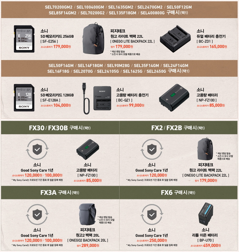- 프로모션 기간 내 제품 구매 후 정품등록 시 최대 52만원 상당의 백팩, 삼각대 등 출사 지원 사은품 증정