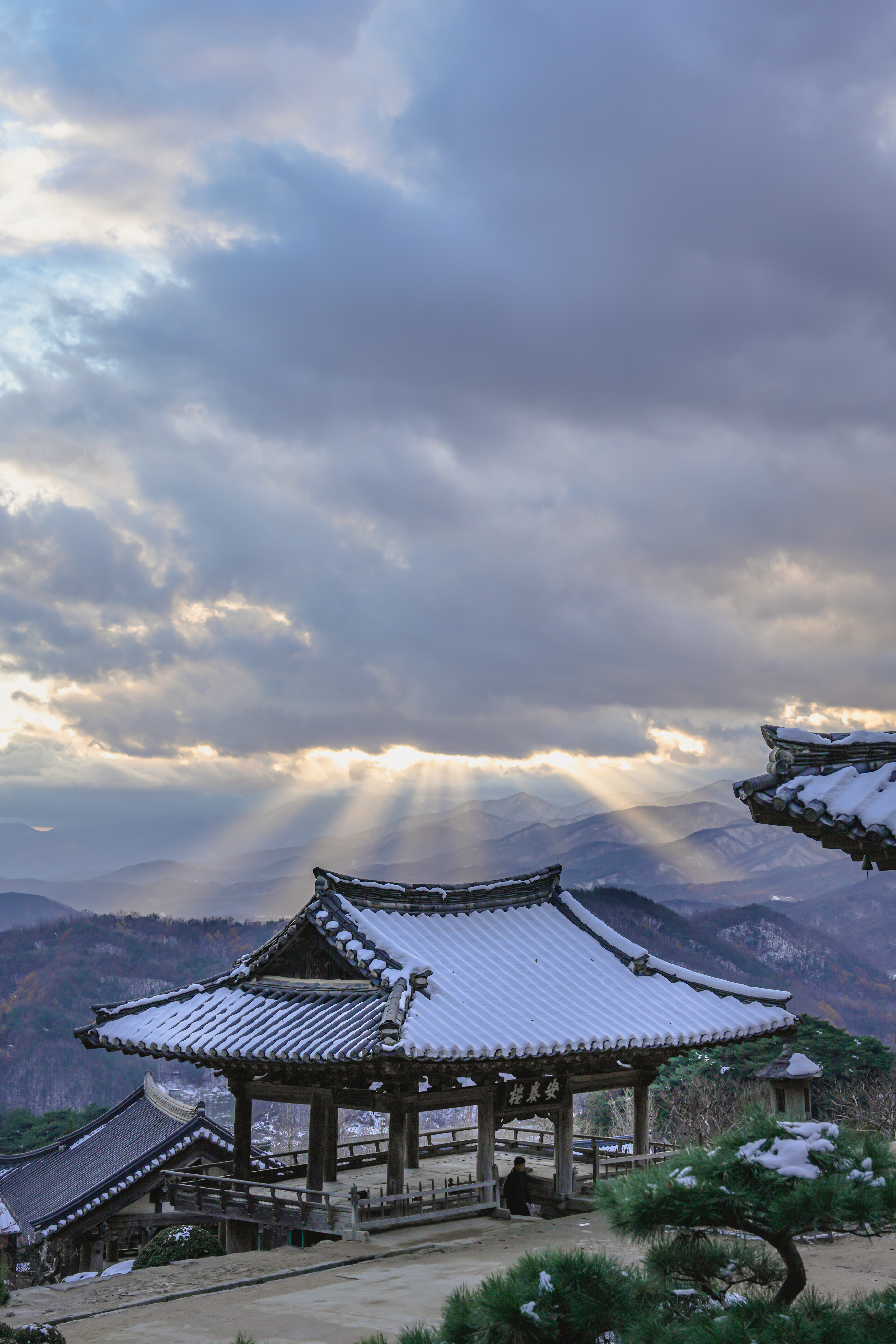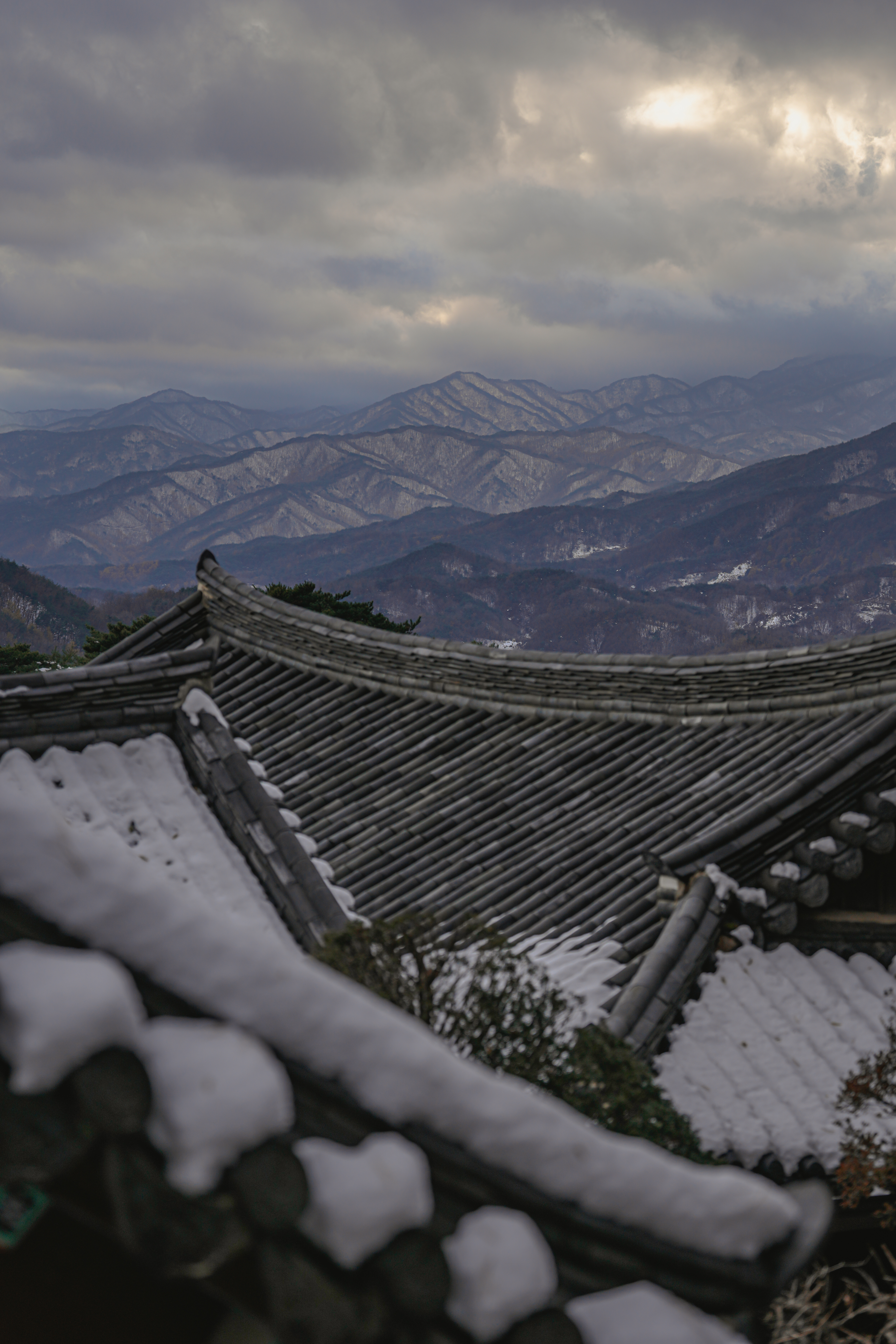 부석사의 또 다른 포토 스팟은 멀리 늘어진 소백산 능선이랍니다. 부석사 높은 곳에서 바라보는 소백산의 능선은 겨울에 그 진가를 발휘하는데요. 멀리 떨어진 산맥과 가까운 곳의 기와지붕이 마치 한 층에 겹쳐진 풍경을 통해 더욱 풍성하고 압도적인 설경을 즐길 수 있습니다. 이 곳에서도 잊지 말고, 한 컷 남겨보세요!