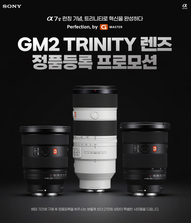 소니코리아에서 A7M5 출시 기념 ‘GM2 TRINITY 렌즈 정품등록 프로모션’을 진행합니다.