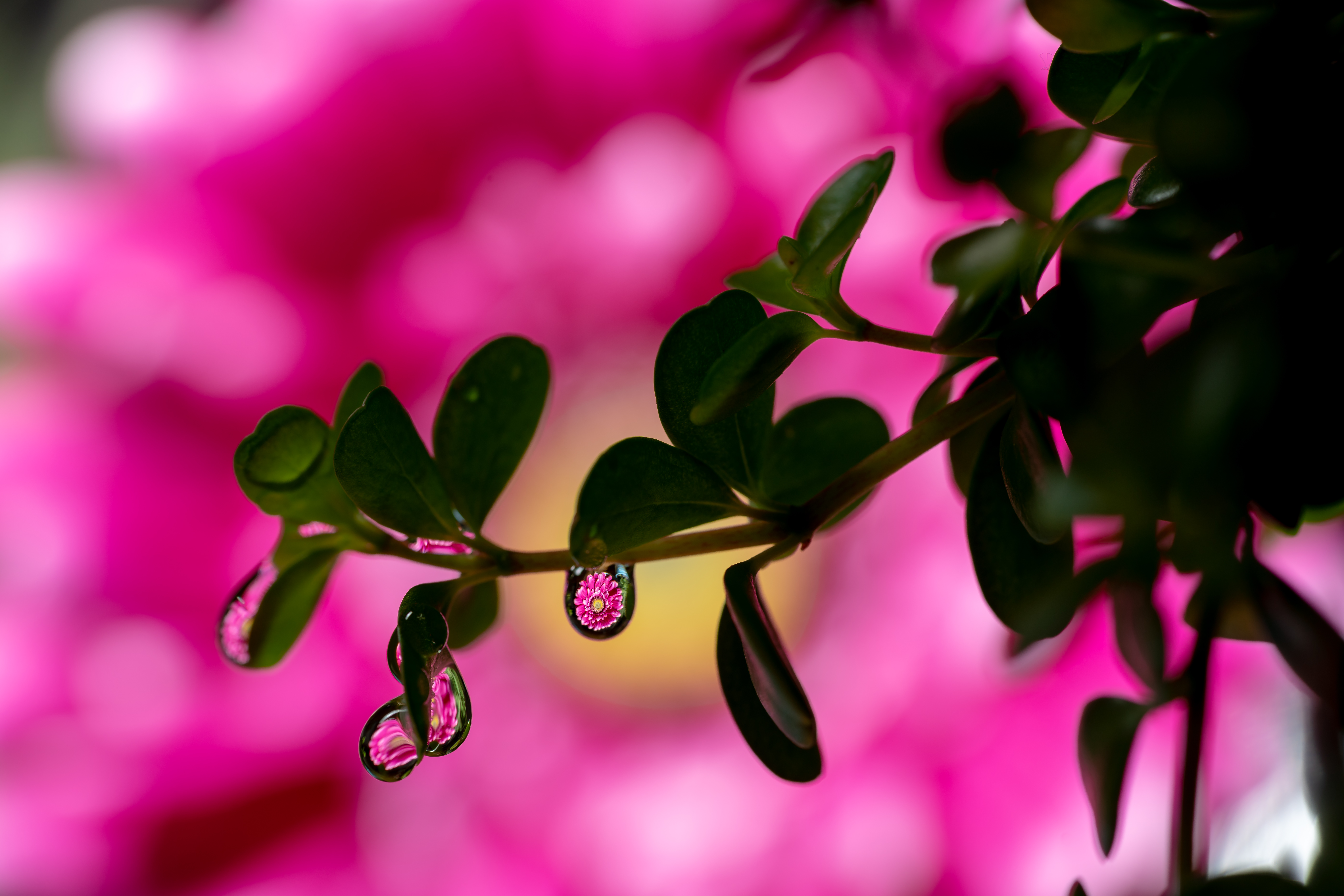 세 번째. 물방울에 맺힌 꽃을 촬영하고 싶다면 물에 글리세린을 섞어주고 주사기로 한 방울, 한 방울 맺히게 한 후 촬영해야 합니다. 분무기로는 물방울이 크게 맺히지 않기 때문에 촬영이 어려우며, 플래시나 LED 라이트 등의 조명을 활용하면 좋은데 이때 위치는 물방울 앞이 아니라 뒤쪽에서 비쳐주어야 합니다. 만약 물방울 앞에서 빛을 비춰주게 되면 물방울에 빛이 모두 반사되어 나오기 때문에 사진이 예쁘게 나오지 않습니다.