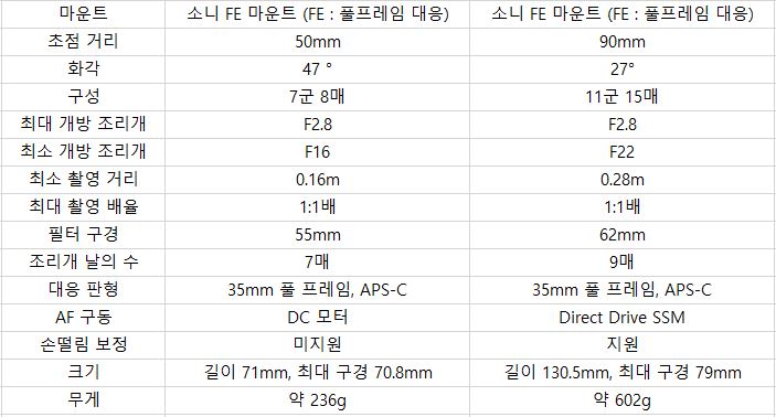 매크로 렌즈는 매우 짧은 초점 거리에서 최적의 광학 성능을 제공하도록 특수 설계되어 가까운 거리에서 가장 또렷한 초점을 구현하지만 매크로 사진 촬영에만 사용할 수 있는 것은 아니고 일반적인 촬영에도 충분히 대응이 가능한 렌즈입니다. 소니에서는 총 2개의 미러리스 카메라용 매크로 렌즈를 출시하고 있으며, 두 렌즈 모두 1:1 등배 접사를 지원합니다.