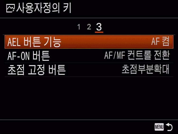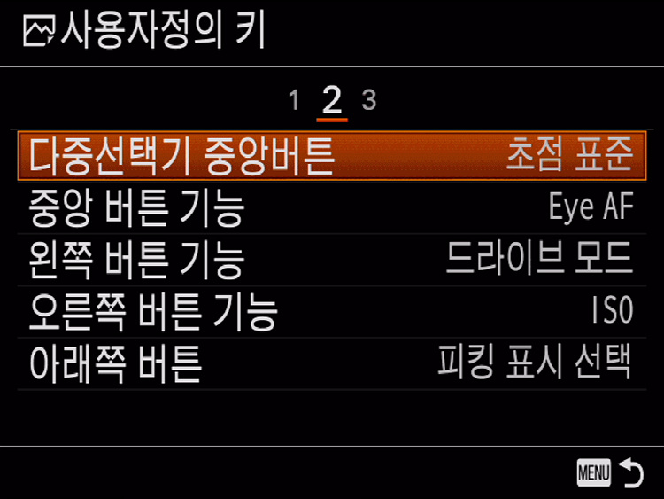 먼저 해야 할 것은 카메라의 할당된 버튼의 기능을 바꿔주는 것입니다. <사용자정의 키> 메뉴를 찾아야 하는데 이는 보통 카메라 설정2 메뉴에서 찾으실 수 있습니다. (기종에 따라 사용자정의 키 메뉴의 위치는 상이할 수 있습니다.)