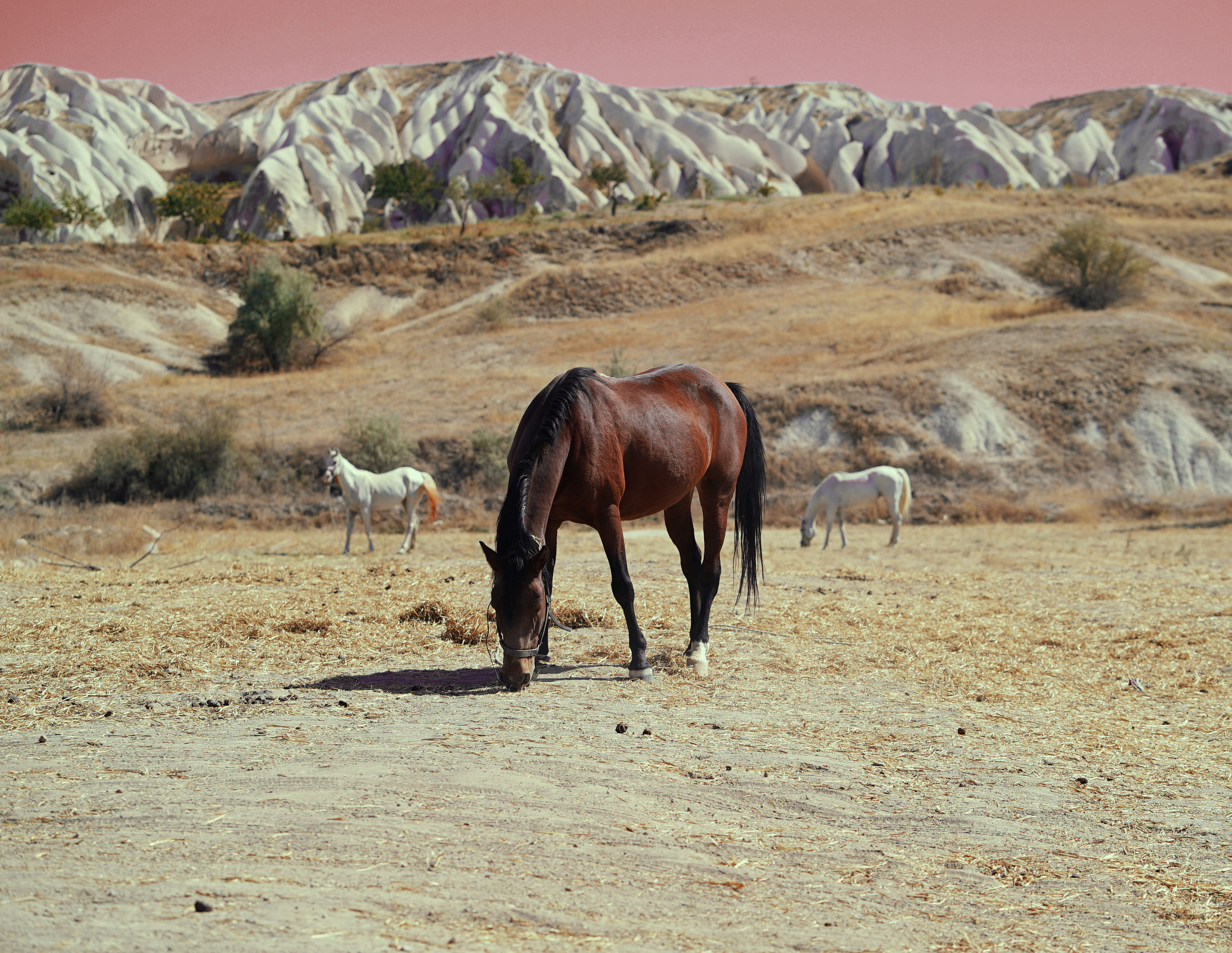 비옥하진 않지만 고요한 들판 위에서 여유를 즐기며 풀을 뜯는 세 마리의 말이 눈에 띄는 위 작품은 러시아 ‘Anastasia Kaminskaya’ 작가가 촬영했습니다.