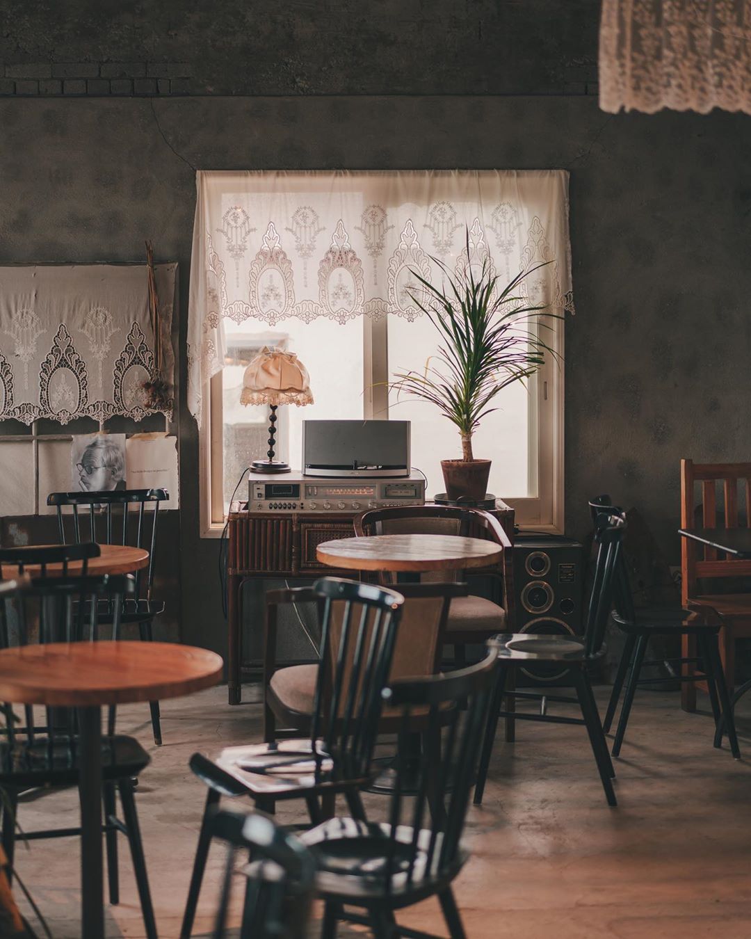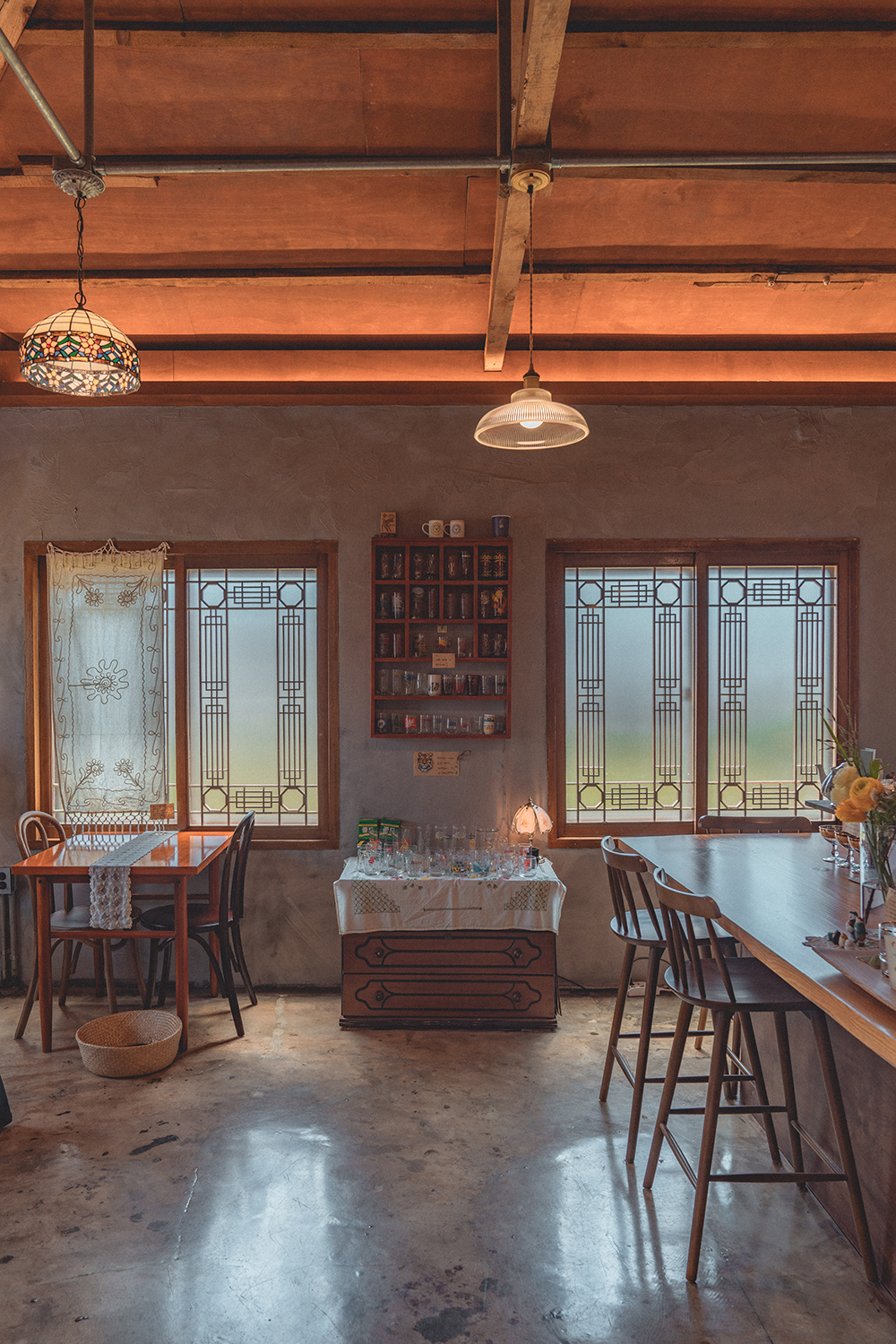 카페 내부로 들어가면 우드톤의 분위기로 발걸음을 멈추게 만드는데요. 밖에서 보았을 때와 사뭇 다른 느낌을 주어 많은 이들에게 추억의 향수를 일으킨답니다. 특히 나무창과 빈티지한 조명이 한층 더 내부를 앤티크하게 꾸며주어 편안함을 느끼게 만들어주는 것 같습니다.