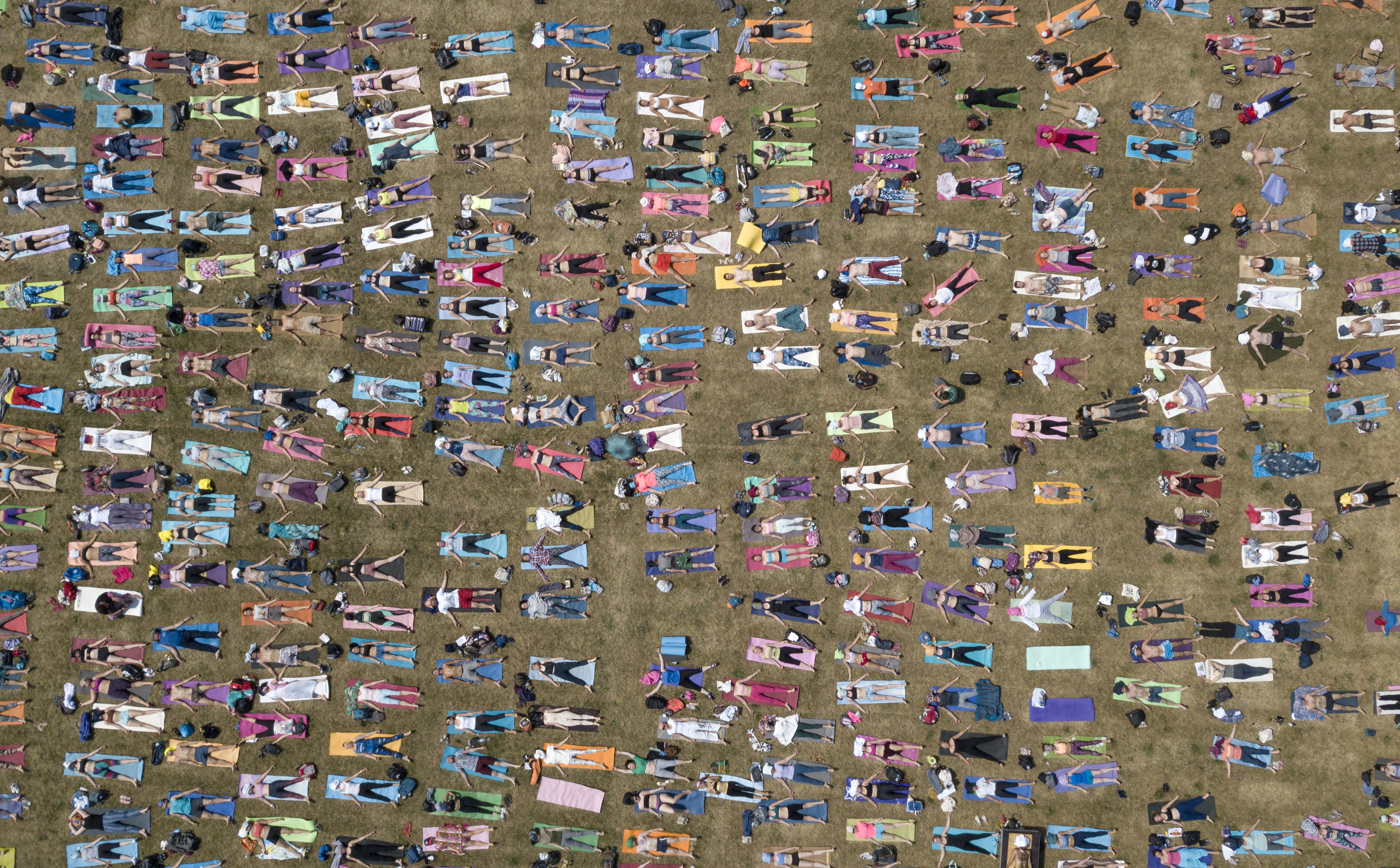 위 작품을 촬영한 러시아의 사진작가 ‘Misha Japaridze’는 2019년 6월에 러시아 모스크바 차이츠노 공원을 지나다 요가 수업에 참석한 사람들을 발견했다고 합니다. 그 후, 홀린 듯이 그들을 카메라 프레임에 담아냈다는데요. 저마다의 개성을 보여주는 듯한 알록달록한 요가 매트의 색감과 압도적인 스케일을 보고 있노라면 어느 사진 작가든 이 모습을 간직하고 싶었을 것 같습니다.