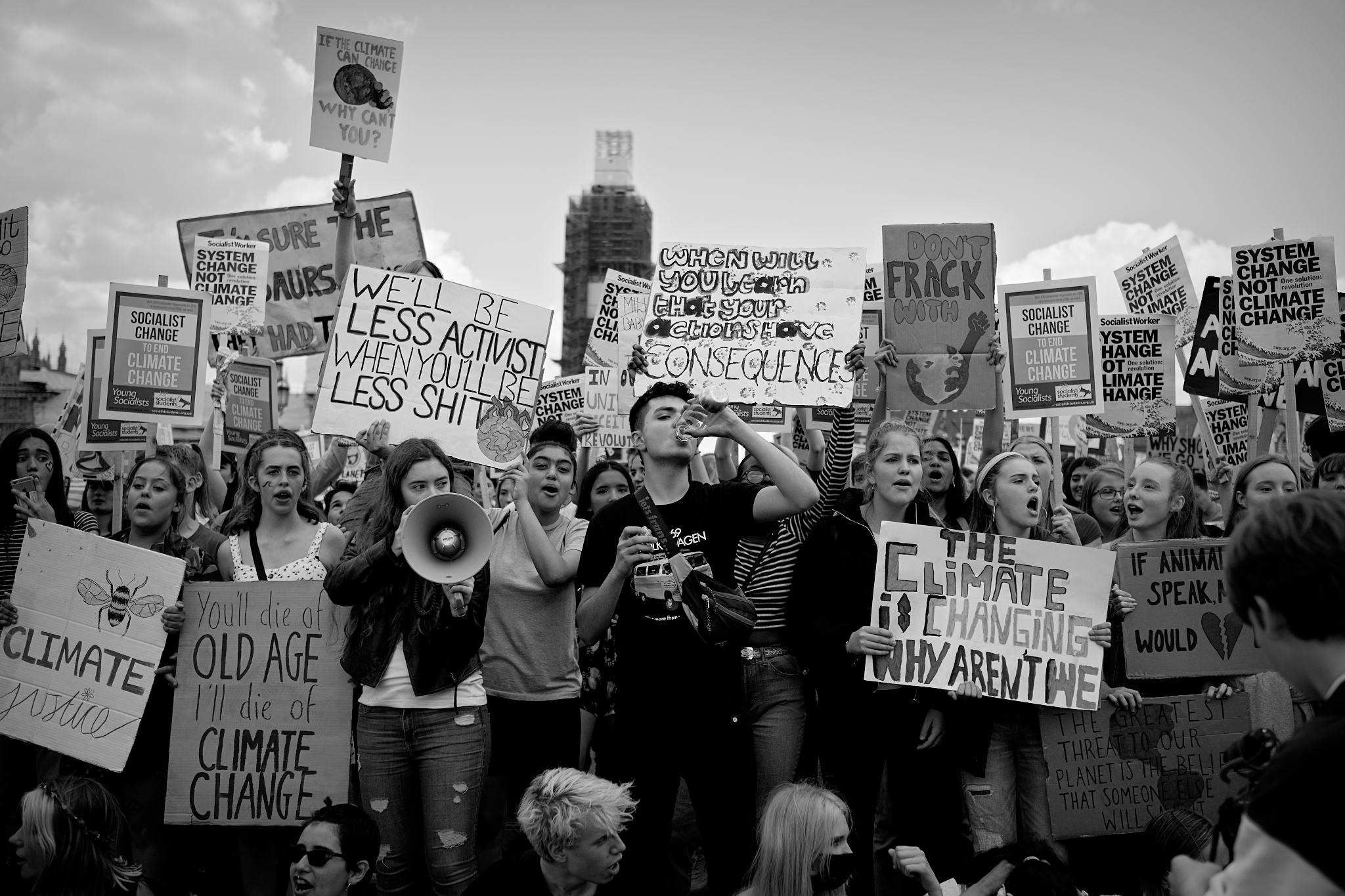 “런던 중심가를 배회하고 있을 때, 웨스트민스터 다리를 막고 있는 영국 학생 기후 단체를 우연히 발견했습니다. 이는 우리 모두에게 영향을 미치는 문제이고, 저 또한 신경 쓰고 있는 문제였기 때문에 끝까지 시위에 따랐습니다. 학생들의 반항과 결의를 포착하고 싶기도 했습니다.