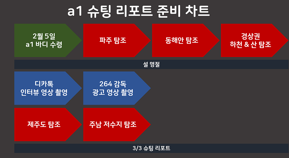 첫 날에만 하루에 1,000km 가까이 운전할 정도로 강행군으로 진행했던 3주간의 a1 테스트와 슈팅리포트 준비 과정, 차근차근 보여 드리겠습니다.