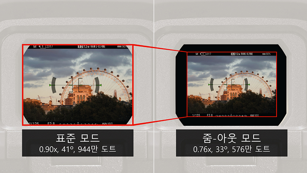 참고로 944만 도트는 표준 모드에서 지원합니다. 줌-아웃 모드나 기타 120fps / 240fps 주사율 지원 시에는 고화질로 작동하지 않으며 240fps 주사율 사용 시에는 줌-아웃 모드가 되어서 뷰파인더 크기도 0.76x 작아집니다. 개인적으로는 단축키를 설정해서 고화질과 주사율을 상황에 맞게 빠르게 변경해가며 사용하고 있으니 여러분도 이 팁을 참고하시기 바랍니다.