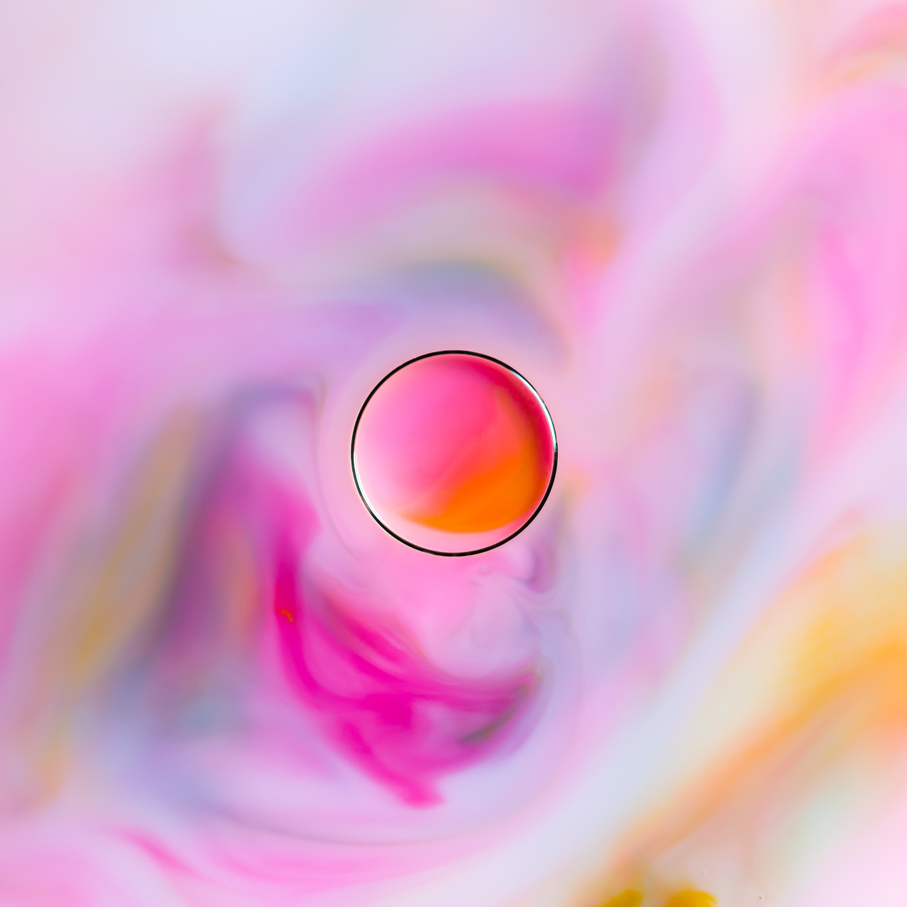 이 작품은 움직이는 잉크와 액체가 담긴 파스텔 캔버스 안에 놓여 있는 기름 방울을 찍은 사진입니다. 특별한 기교 없이도 다양한 색상들이 한데 어우러져 자아내는 고요한 아름다움이 작가의 독특한 감각을 나타내는 것 같네요.