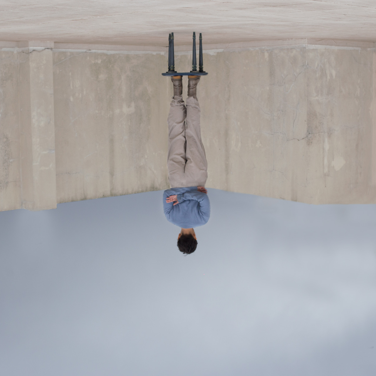 한 사람이 의자 위에 서 있는 모습을 거꾸로 표현한 이 작품은 아르헨티나 ‘Lucía Benavento’ 작가의 작품 ‘Look at the Sea’ 입니다.