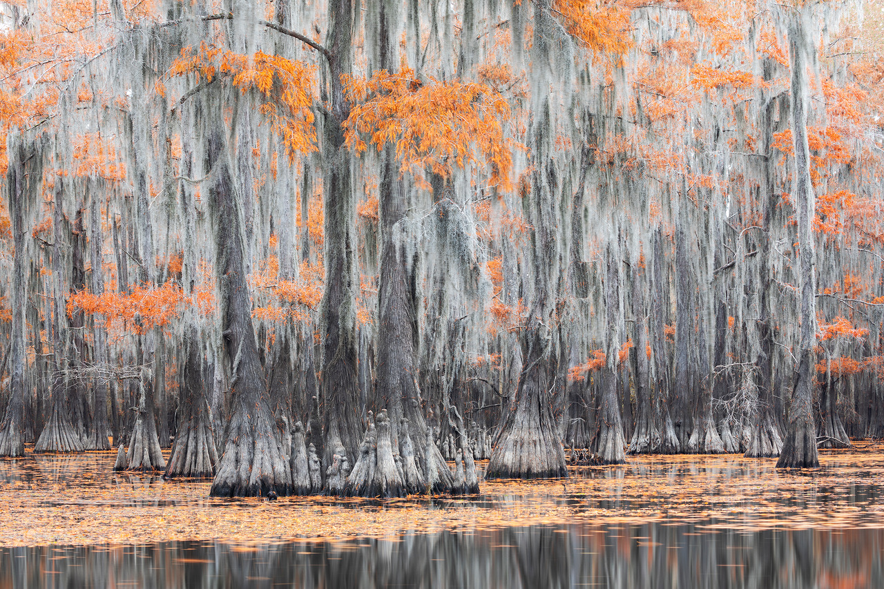 이 사진은 작가의 ‘Swamps in Autumn’ 이라는 시리즈 중 하나의 작품인데요. 작가는 지난 2019년 11월 카약 여행 중에 발견한 텍사스 늪을 촬영했다고 합니다. 그 당시 발견한 스페인의 이끼와 오렌지 잎, 그리고 물과 나무가 어우러져 뿜어내는 아름다움에 큰 매력을 느꼈다고 합니다.