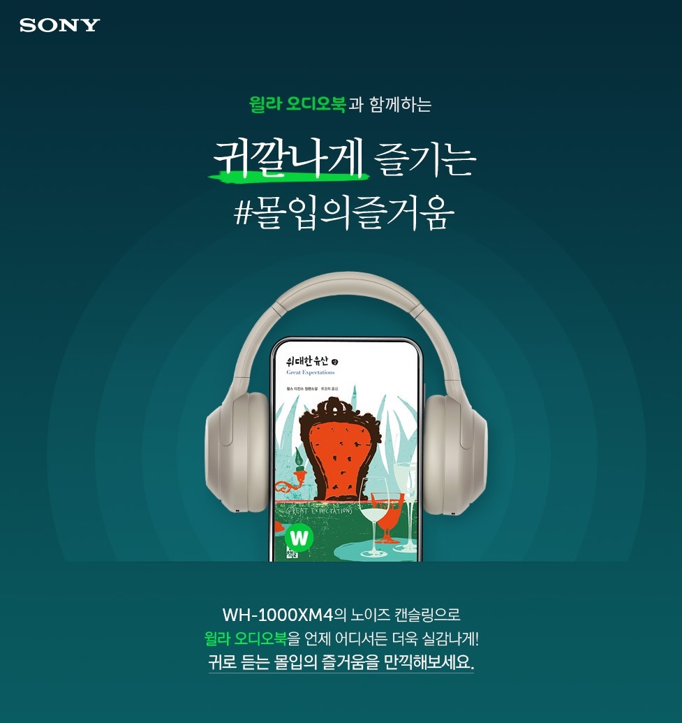 다가오는 여름, 몰입도 높은 독서의 즐거움을 제공하기 위해 윌라 오디오북과 함께 진행되는 이번 ‘귀깔나게 즐기는 몰입의 즐거움’ 프로모션은 뛰어난 노이즈 캔슬링 성능으로 더욱 실감나게 오디오북을 즐길 수 있도록 도와주는 무선 노이즈 캔슬링 헤드폰 WH-1000XM4를 대상으로 진행된다.