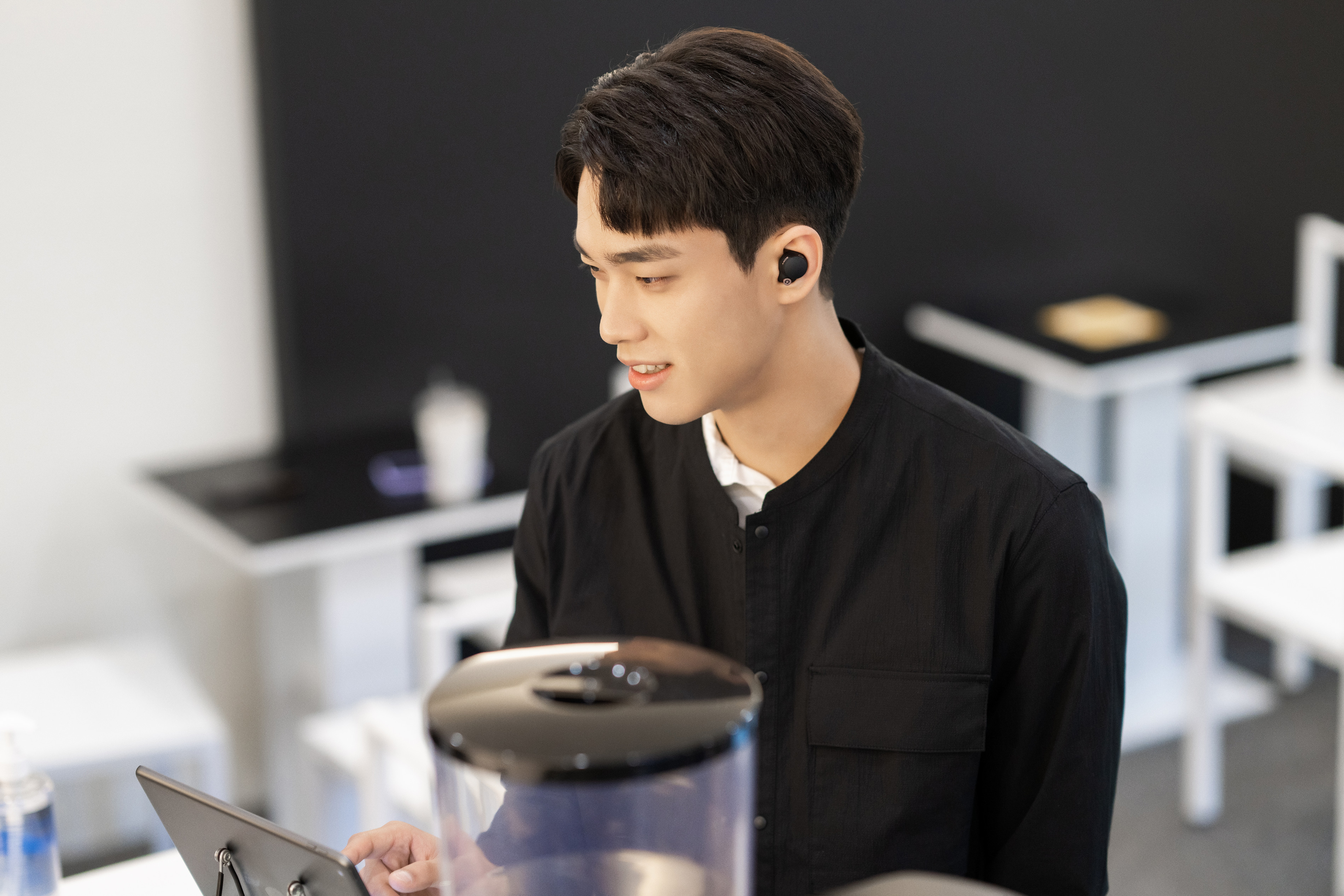 칸다 [음향 담당]: 붐비는 지하철역이나 사무실과 같이 주변이 소란스러운 곳에 있더라도 주변 소리가 들리지 않아 방해 없는 대화가 가능합니다. 굳이 목소리를 높여 크게 말하지 않아도 상대방에게 목소리가 전해지기 때문에 카페 등 공공장소에서도 주변에 피해를 주지 않고 대화를 할 수 있죠.