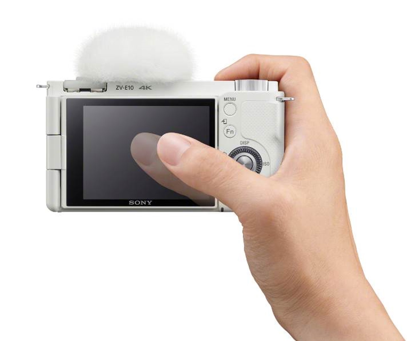 약 343g의 가벼운 무게와 콤팩트한 사이즈(115.2mm x 64.2mm x 44.8mm)를 자랑하는 ZV-E10은 브이로그 및 다양한 영상 콘텐츠를 더욱 간편하고 효율적으로 촬영할 수 있도록 설계됐다. 좌우로 개방되는 스위블 LCD를 탑재해 어느 각도에서나 화면 프레임을 정교하게 조정할 수 있으며, 셀피 촬영 시에도 화면을 가리는 일 없이 카메라 바디 상단에 외부 마이크를 연결해 촬영이 가능하다.