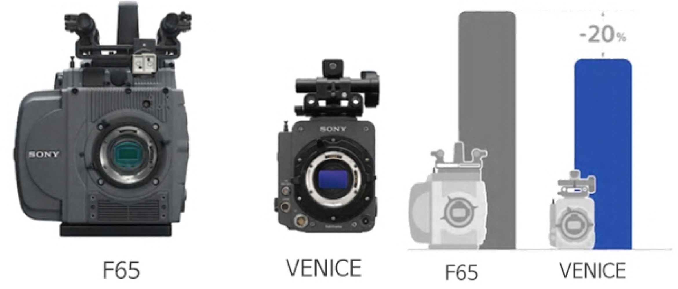 방송 업무용 카메라 최신 모델의 경우, 중량을 60% 줄여 전력 소비량을 약 50% 정도 절감했습니다. 영화 촬영에 최적화된 CineAlta(시네알타) 카메라 최신 모델은 초기 모델보다 소비 전력을 70% 절감했구요. 소니 풀프레임 디지털 시네마 카메라 VENICE(베니스) 최신 모델은 기존 모델 F65에 비해 40% 작아진 크기와 20% 가벼워진 무게를 자랑합니다. 렌즈의 경우도 플라스틱 사용을 약 34% 절감하고, 제품 중량도 약 10% 감소시켰죠.