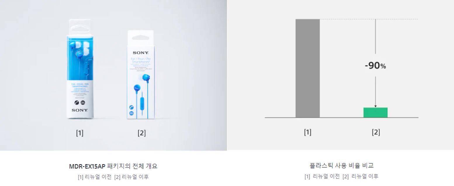 이에, 소니는 자원을 보존하기 위해 제품의 외부 포장재도 기존 플라스틱에서 종이로 변경하는 노력을 실천하고 있습니다.