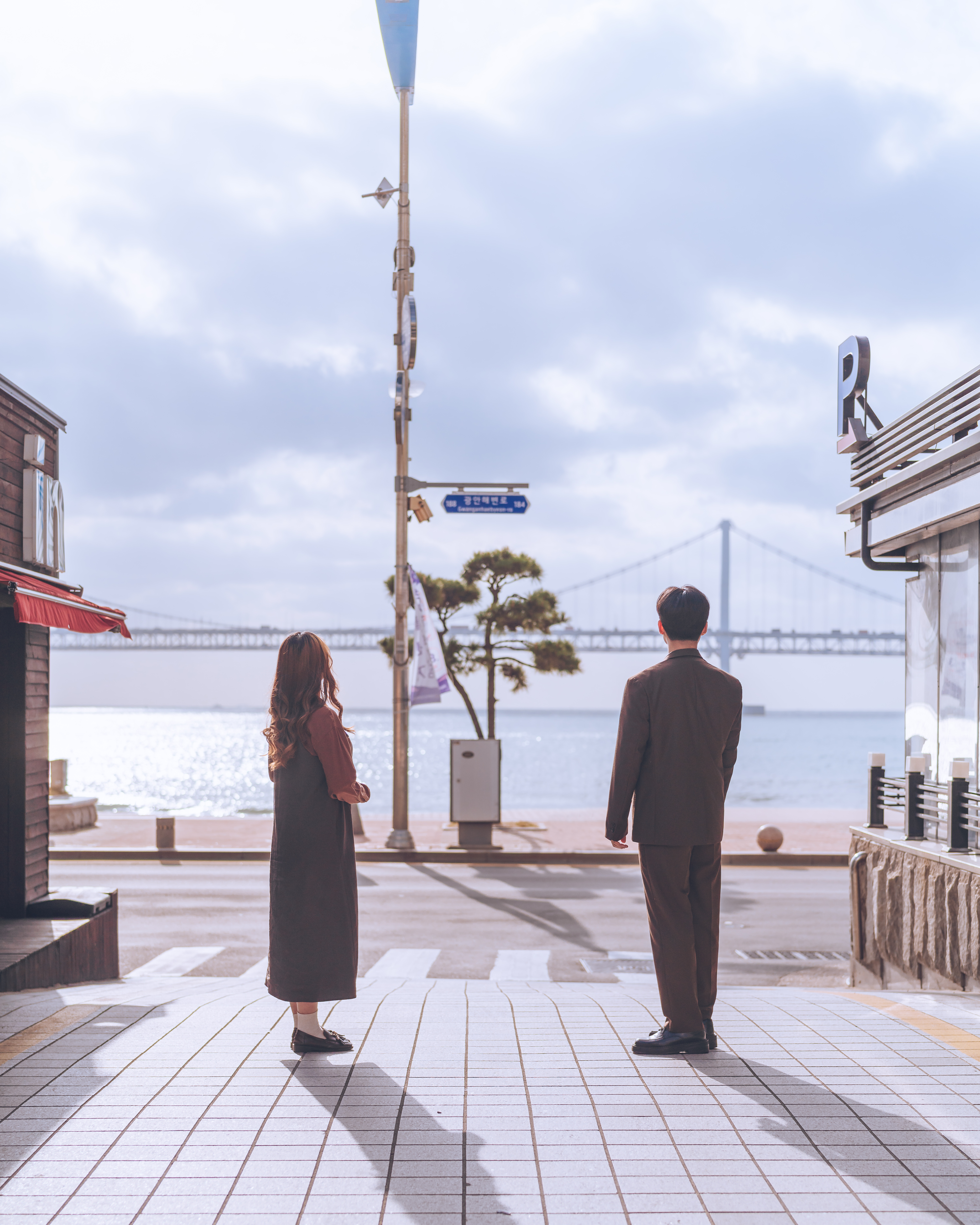 자, 이제 장소 선정이 끝났으면 포즈만 남았겠죠. 둘 만의 포징(Posing 자세잡기) 루틴을 설정하는 것도 좋습니다. 서로 선호하는 얼굴면을 확인하고 1~5가지 정도의 포징 루틴을 설정해서 촬영해 보고 리뷰해 보세요. 본인들만의 시그니처 포징을 발견하는 행운도 느껴보시고요.