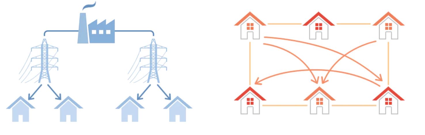 기존에는 발전소에서 송전망을 통해 각 가정·공장에 일방적으로 전력을 공급했습니다. 반면, 리튬이온 기반의 에너지 서버 유닛을 사용하는OES는 각 가정에서 전력을 저장하고 각 가정이 자연 에너지를 주전원으로 전력을 사용함과 동시에 DC(직류) 송전망에 의해 서로 분배하고 공유할 수 있는 직류 마이크로그리드로 구성되어 있습니다.