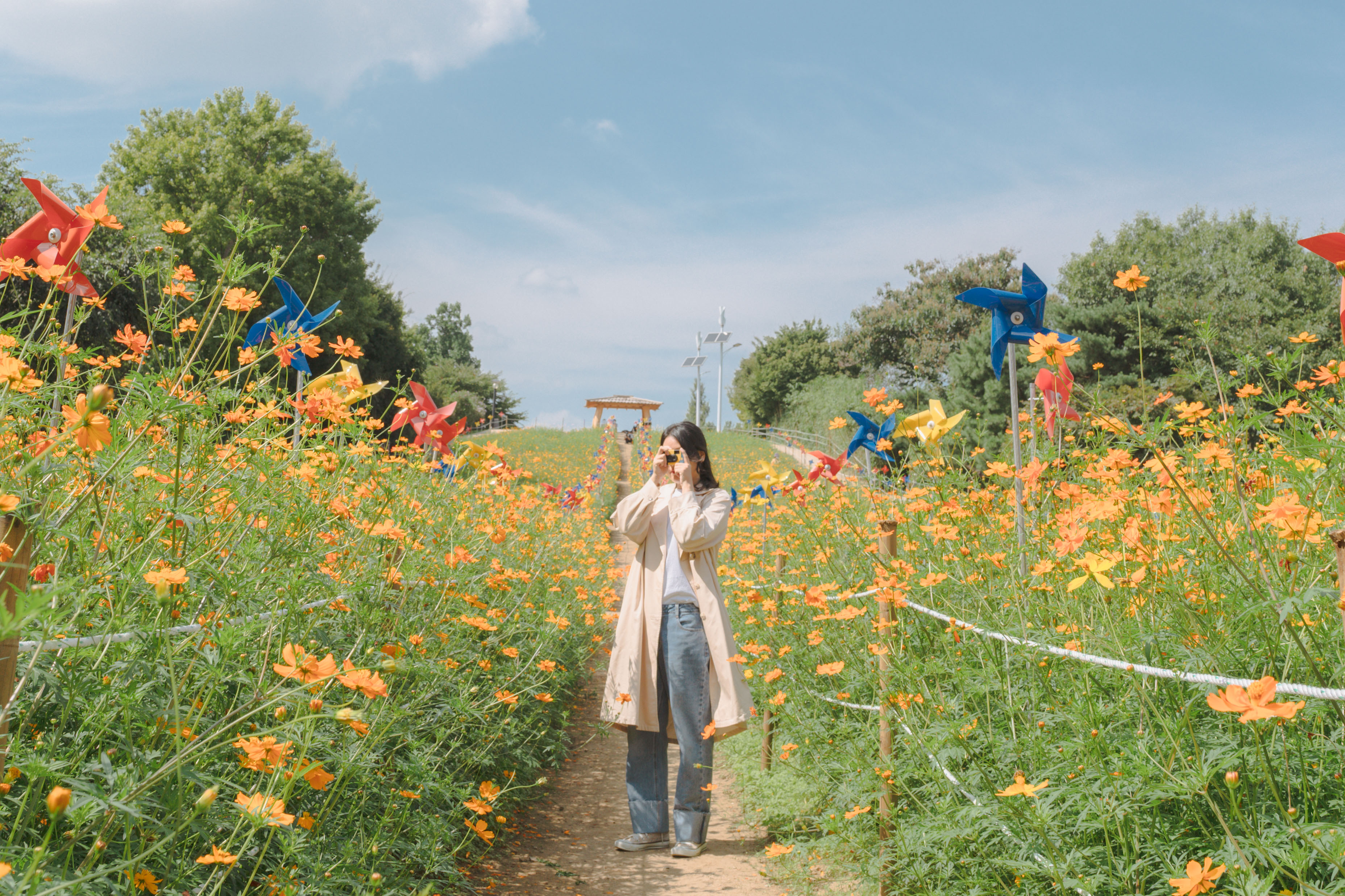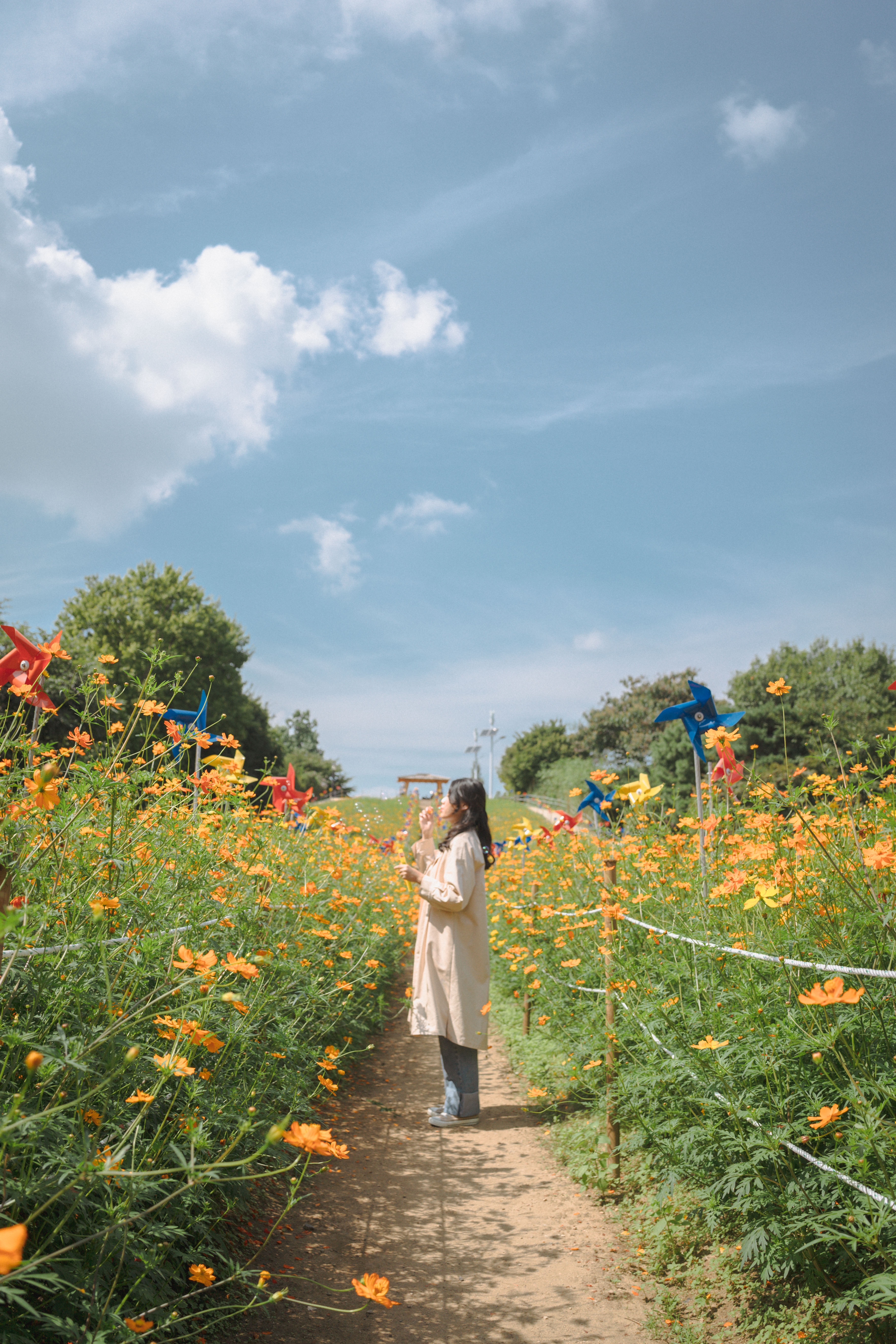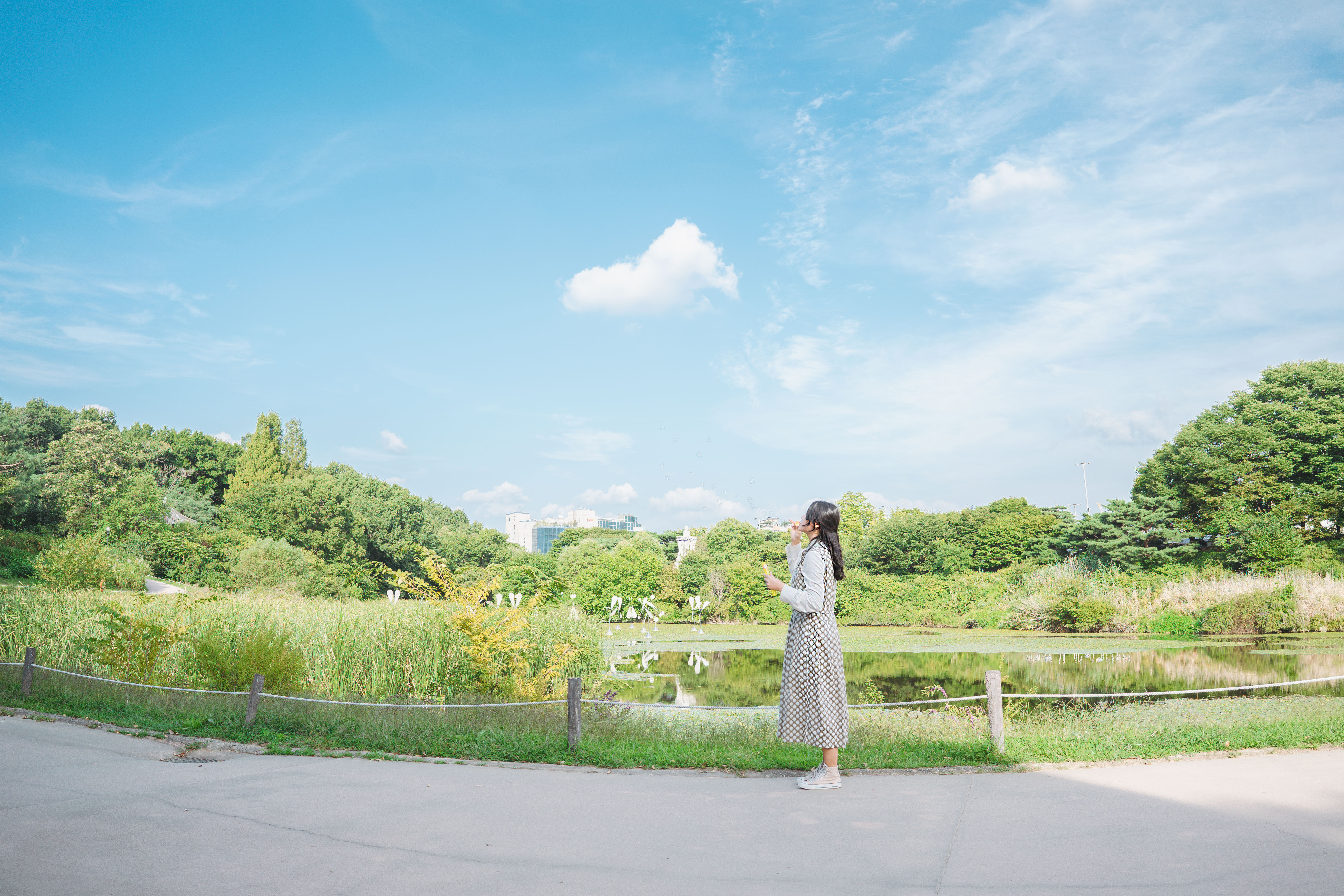 돋보이는 셀프 촬영을 위해서는 꽃이나 숲 등 자연 풍경과 함께 촬영하는 것이 좋답니다. 단순한 배경은 시선이 모델에 집중되지만, 풍경과 어우러지는 장소라면 전문 모델이 아니어도 자연스럽게 담아낼 수 있답니다.