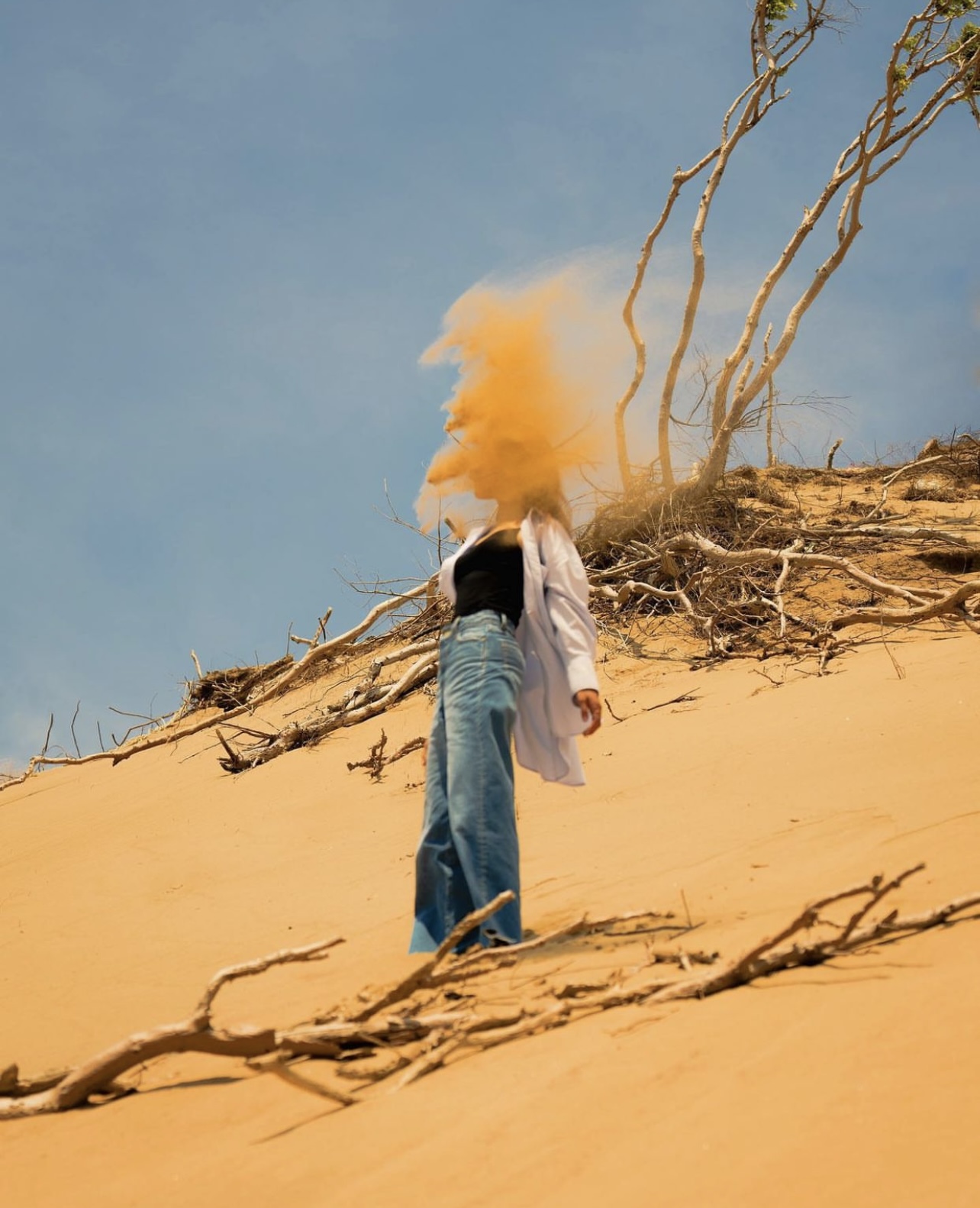유지민 작가 : 우리나라에도 해외 못지않게 특별한 장소가 많다고 생각해요. 이 작업물은 어떤 메시지보다는 그러한 장소에 더욱 집중한 촬영이었습니다. 추수가 끝난 밭을 시네마틱 하게 연출할 수 있을 것 같다는 생각에 이 장소를 정했어요. 계절 자체가 겨울에 가까워지는 가을이었는데, 그쯤 되면 아침마다 안개가 많이 끼거든요. 그 안개가 주는 이미지 자체가 영화 속 같기도 하고, 극적이기도 하잖아요. 주위에 흔하면서도 자주 볼 수 없는 풍경들, 평범하지만 특별한 장소가 될 수 있다는 점을 많이 담고 싶었어요.