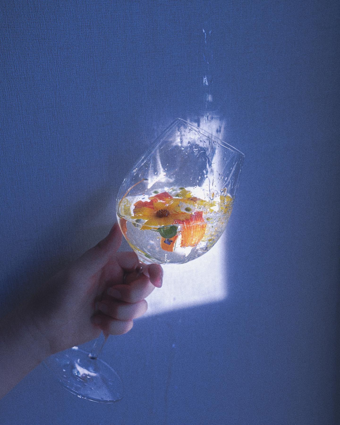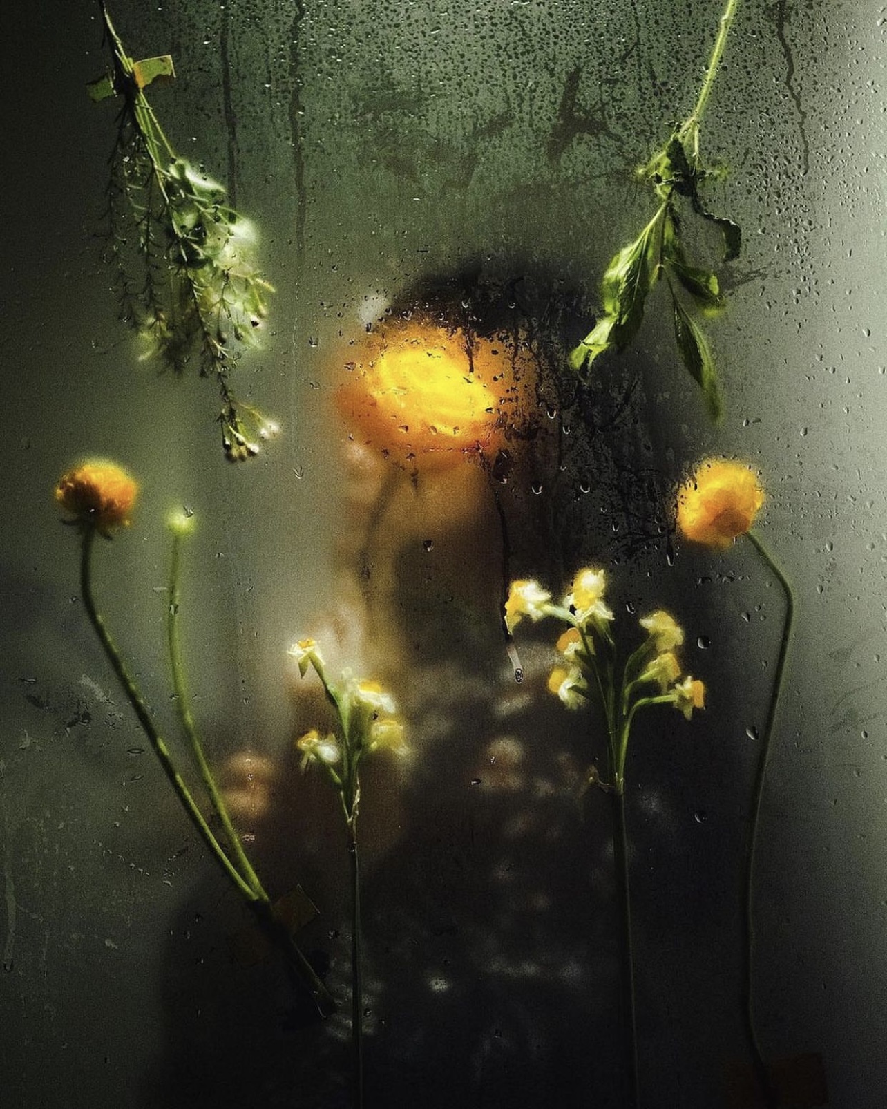 유지민 작가 : 늘 작업하고 싶었던 아이디어를 실현시켰던 이미지가 떠오르네요. 전시를 하는 기간에 선물로 받았던 꽃을 샤워 부스에 붙여 두고, 뜨거운 물을 한참 틀어서 김이 가득 서리게 했어요. 그러다가 물을 끄니 김이 녹으면서 유리에 물방울이 맺히게 됐죠. 당시 종종 모델을 해주었던 여동생을 부스 안에 세워 두고, 핸드폰 조명으로 그 위를 스팟 조명처럼 비추면서 촬영을 했어요. 저는 물과 꽃, 비 이 세 가지 요소를 가장 좋아하는데, 이 요소들이 모두 담겨 있기도 하고 선물 받은 꽃을 활용했던 작업이라 더욱 의미가 있었던 것 같아요.