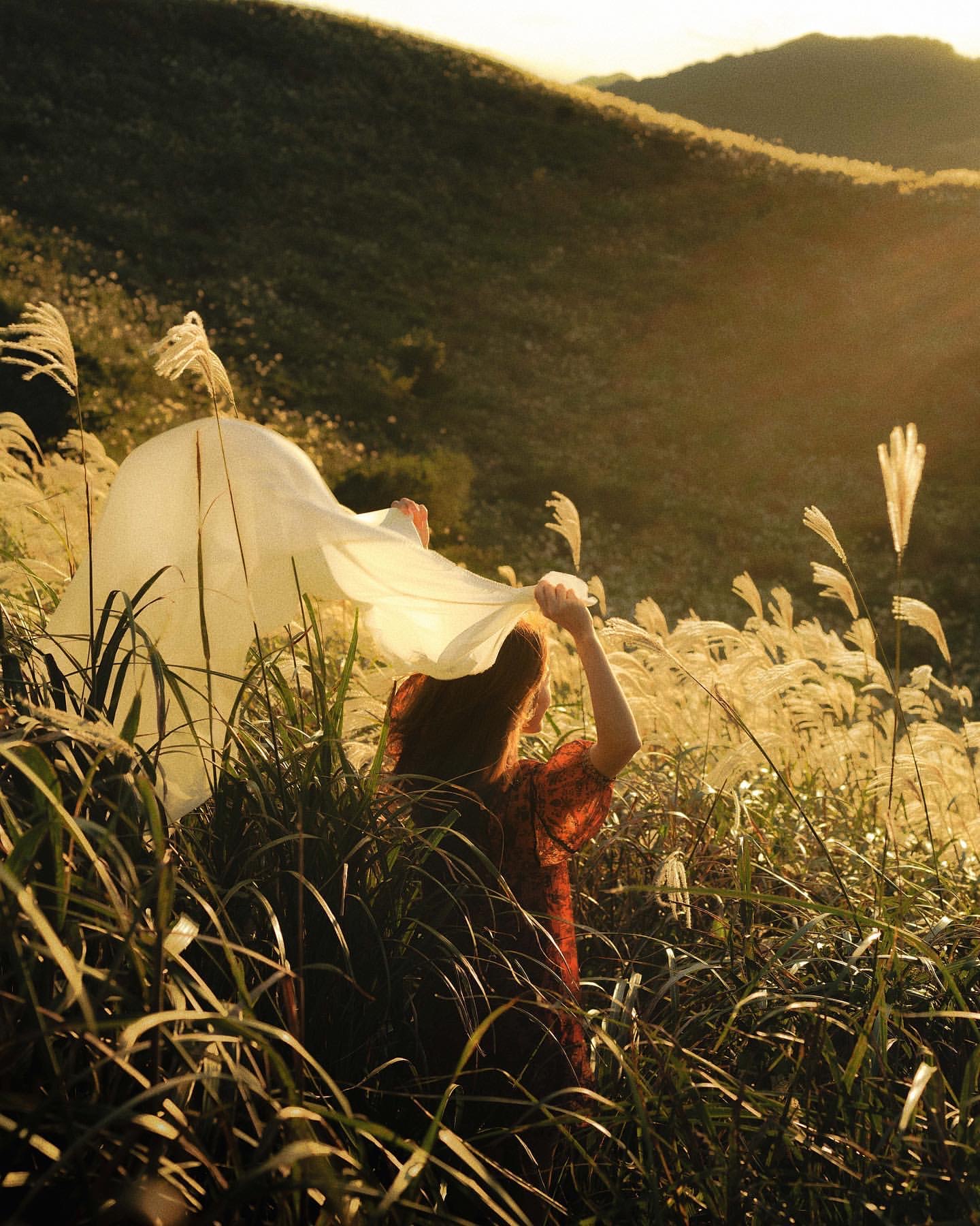 사진에 인물을 넣으면 인물에 비치는 빛 등 굉장히 다양한 부분을 고려해야 하잖아요. 예를 들어서 해가 떠오르는 새벽 바다 앞에 서 있는 사람을 찍고 싶다고 하면, 인물 뒤에 역광이 비쳐서 좋은 사진이 나오기 어렵거든요. 이때 인물과 풍경을 모두 잘 나오게 하려면 어느 시간대에 촬영을 해야 할지, 의상은 어떻게 연출할지 등 신경 써야 하는 디테일이 점점 많아지는 거죠. 저는 소품으로 꽃을 쓰는 경우가 많은데, 이 꽃이 어떤 의미를 내포하고 있는지 보시는 분들의 입장에서는 모를 수 있지만 의미를 부여함으로써 작품을 설명할 수 있는 여지가 늘어나잖아요. 그래서 어떤 색상의 꽃을 고를지, 그에 맞춰 의상의 색상은 어떻게 하면 좋을지 등 이런 디테일을 신경 쓰는 과정이 재미있기도 하고 배워가는 것도 많아서 인물 사진을 계속해서 찍는 것 같아요.