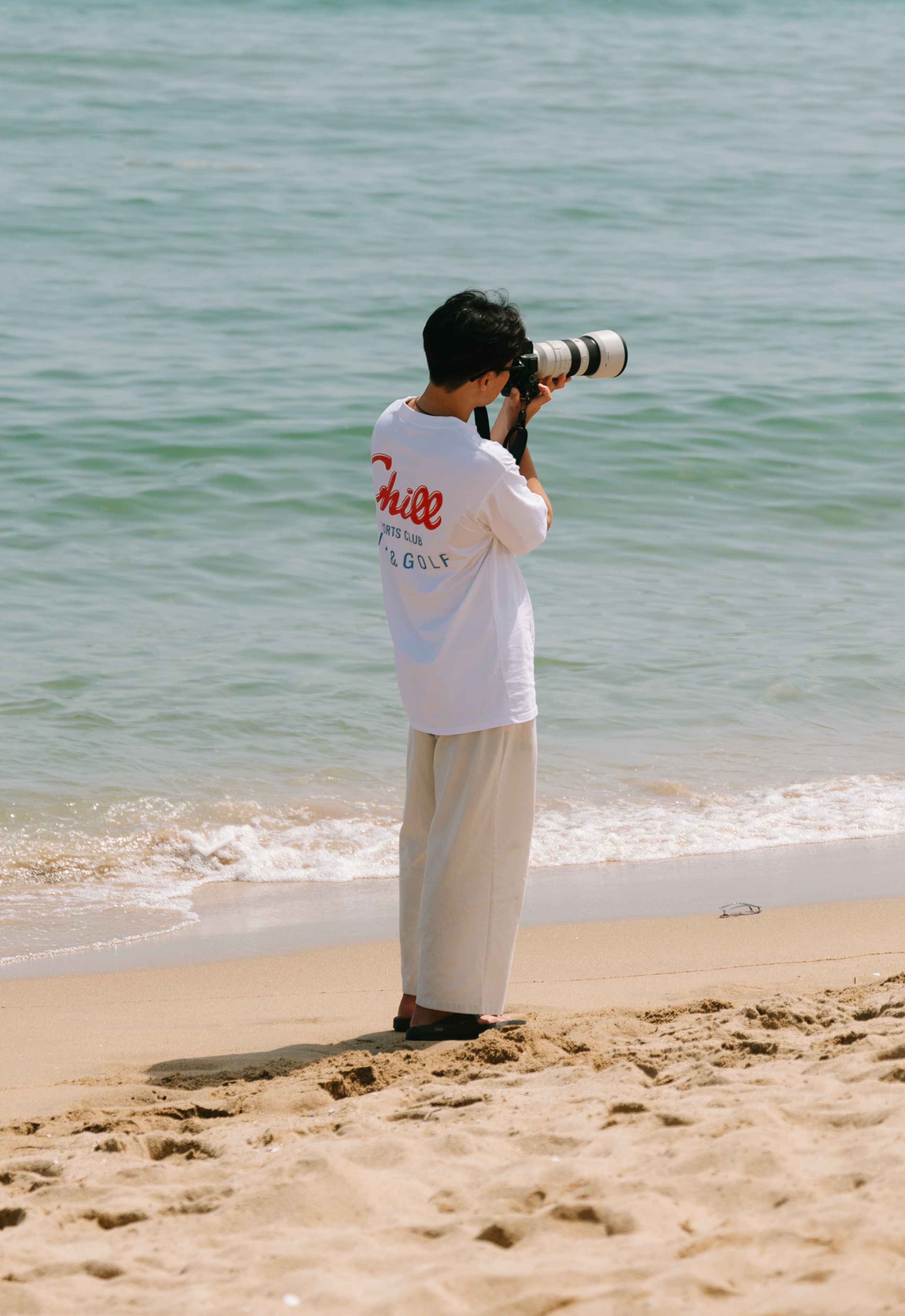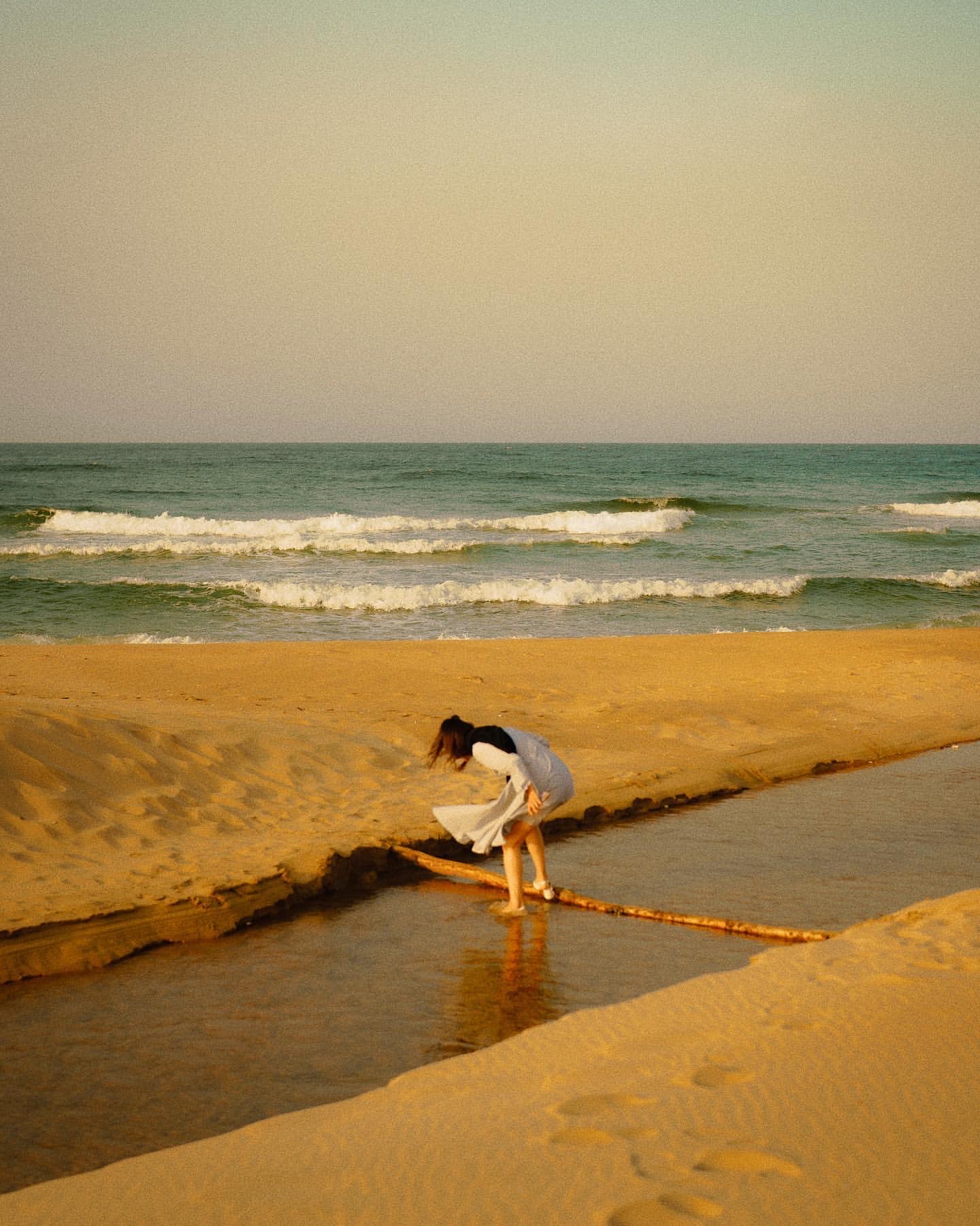 또 추천드리고 싶은 곳은 하조대입니다. 바다를 따라서 사람들이 거의 없는 공간이 길게 이어지거든요. 그곳도 물길이 있으면서 해변이 탁 트여 있어요. 여기에는 중간중간 콘크리트 시설물이나 인명 구조사다리 등 구조물들이 하나씩 놓여 있는데, 그게 되게 예뻐 보이더라고요. 그래서 이런 사진도 찍어볼 수 있었습니다.