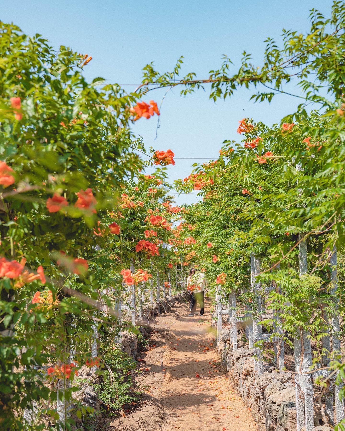 이종현 작가 : 5월에는 보통 장미꽃이 활짝 피는데, ‘북촌에 가면’이라는 카페의 장미 정원이 특히 유명해요. 그곳 외에도 한경면 조수리 마을이라는 곳에서 색색의 장미꽃이 피고요. 6월에는 수국도 많이들 촬영하러 오시고, 능소화의 개화 시기도 그때쯤이에요. 특히 6-7월쯤에는 ‘비체올린’이라는 곳에서 능소화 축제가 열리는데, 주황빛 풍경이 정말 예쁘니 제주도에 들리신다면 한 번쯤 구경해 보시는 것을 추천드립니다.