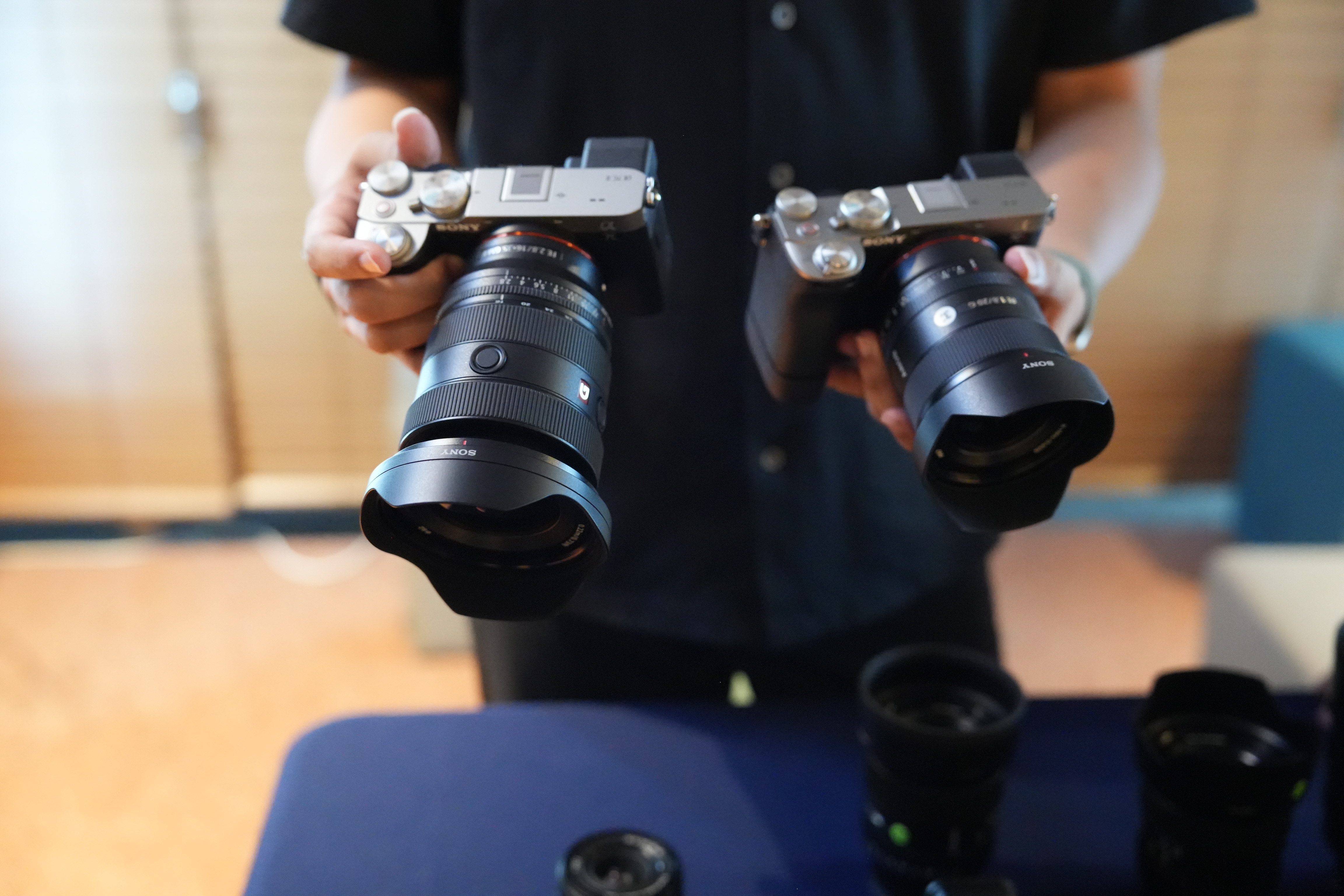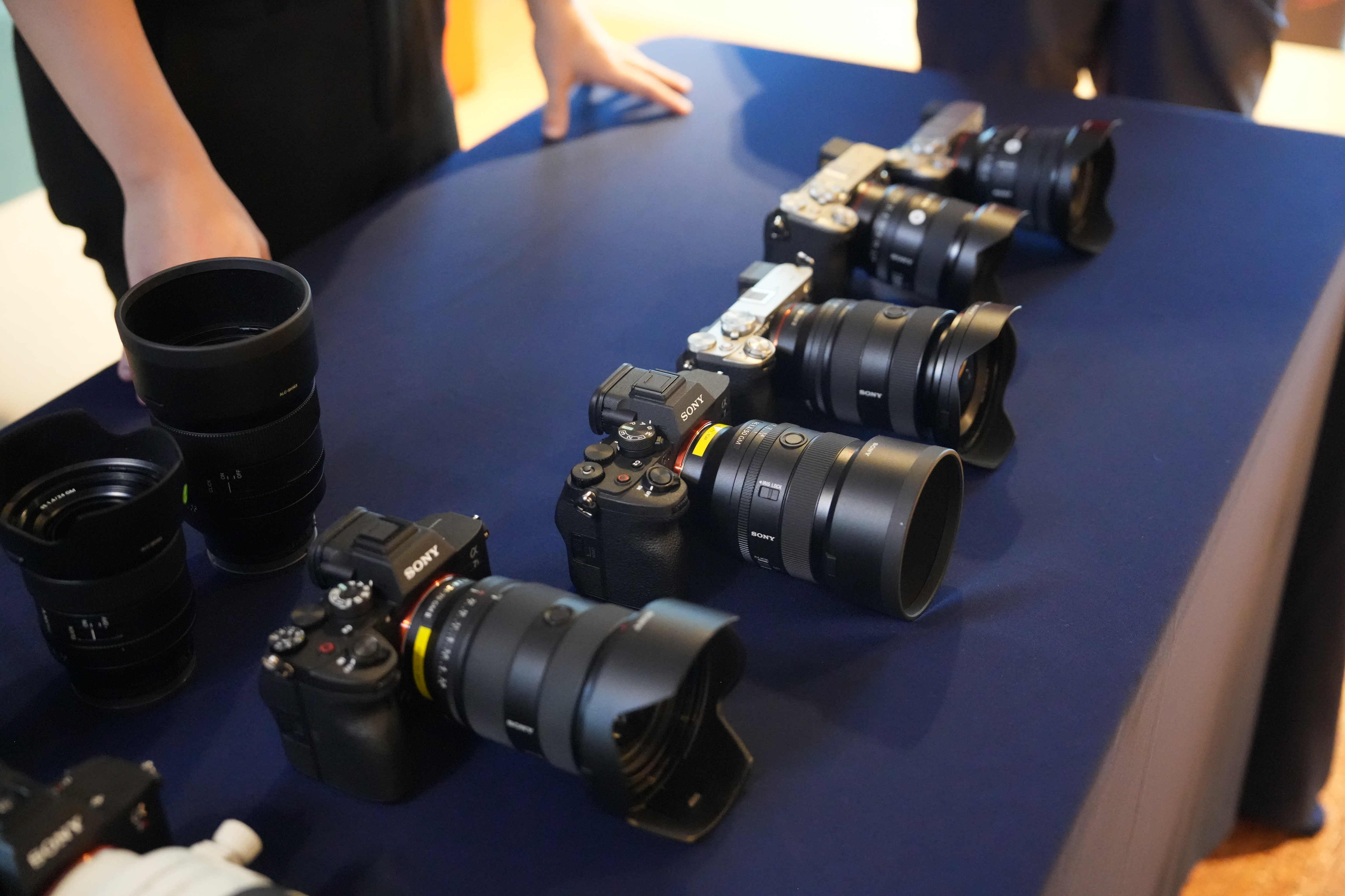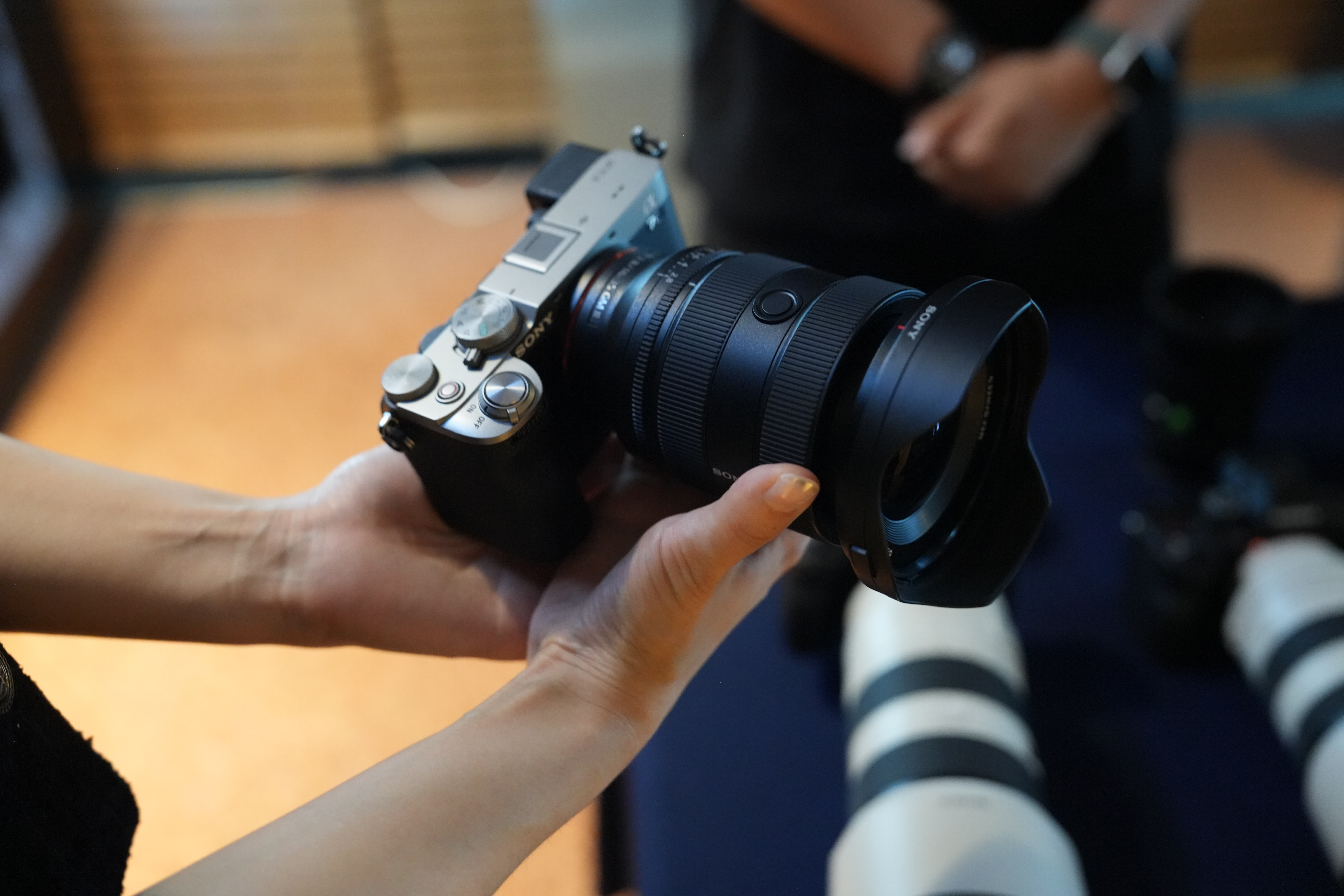 행사가 진행되는 홀 입구에는 소니의 A7C2, A7CR과 SEL1635GM2를 체험하고 설명을 들을 수 있는 공간이 마련되었는데요. 제품 담당자의 상세한 설명과 함께 여러 라인업을 직접 만져보고 눈으로 비교해 볼 수 있는 시간을 제공했답니다.