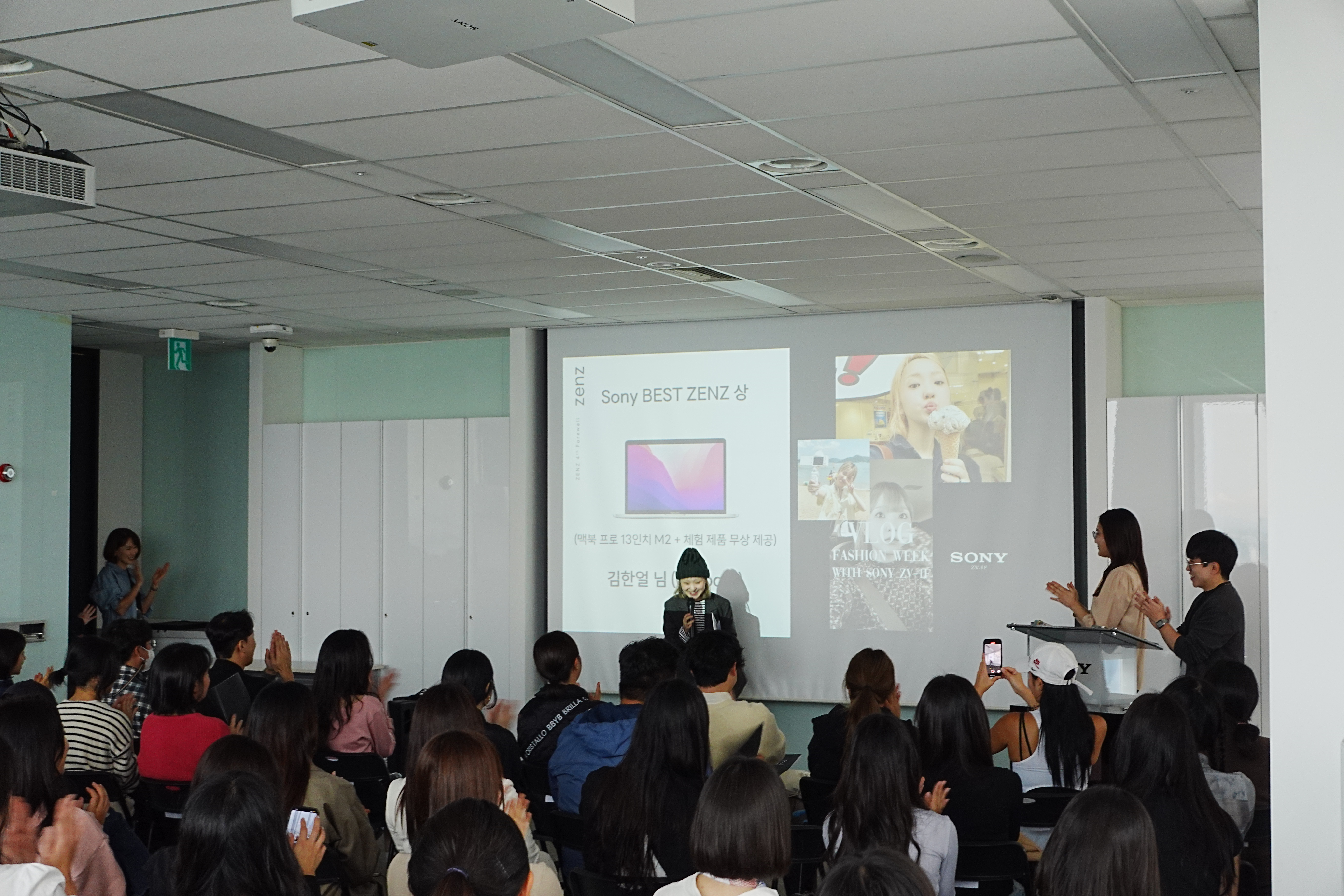 이번 ZENZ 4기의 앰배서더 분들은 다양한 방식으로 활발하게 소통하며 신선한 콘텐츠를 선보여주셨는데요. 활동 기간 동안 오픈채팅이나 서로의 SNS 계정을 오가며 소통했던 덕분인지 조금 어색함이 감돌았던 발대식과 달리 이번 해단식 현장은 동창회에 온 듯 서로를 반기고 축하하는 모습으로 화기애애한 분위기가 이어졌답니다. 소니코리아 본사에서 진행된 해단식은 여의도를 한눈에 내다볼 수 있는 멋진 뷰가 장관이었어요. 오직 ZENZ 4기를 위해 준비된 케이터링도 즐기고, 멋진 포토월에서 함께 인증샷도 남길 수 있었답니다.