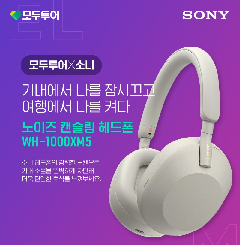 소니코리아가 모두투어와 협업해 연말연시 여행 성수기 시즌을 앞두고 ‘기내 필수품’으로 인기 있는 무선 노이즈 캔슬링 헤드폰 WH-1000XM5를 무료로 체험할 수 있는 이벤트를 진행한다고 밝혔다.